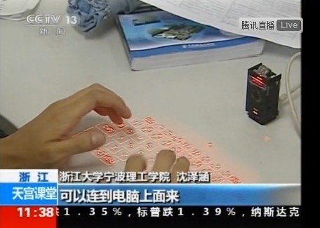 据悉,沈泽涵同学一直以来认真学习专业知识,并运用专业知识制作小发明,比如马桶报警器、空调无电加湿器、无线充电器、折叠LED屏等,图为沈泽涵同学用自己制作的激光投影键盘在打字。