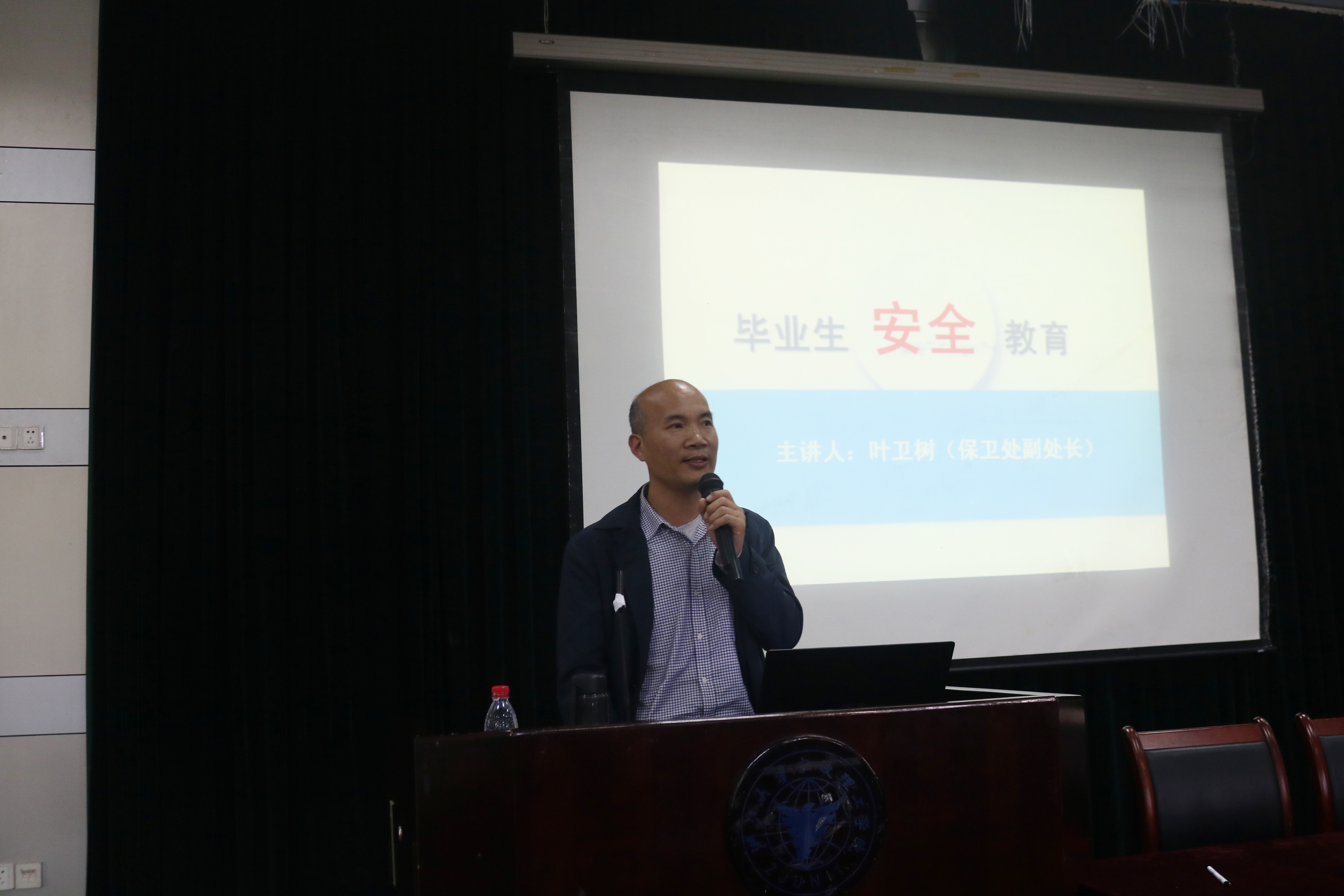 随后,党政办主任王媛媛老师对毕业设计、答辩、毕业离校系统等工作做了提醒和强调。学工办主管杜明珠老师针对就业和“放飞梦想、从信出发”毕业生文明离校活动做了重点解读和介绍。学校保卫处副处长叶卫树从校内外人身安全和文明毕业两方面,给毕业生们带来了一场生动的安全教育课。学院团委朱恺波同学向全体同学发出毕业生文明离校倡议。