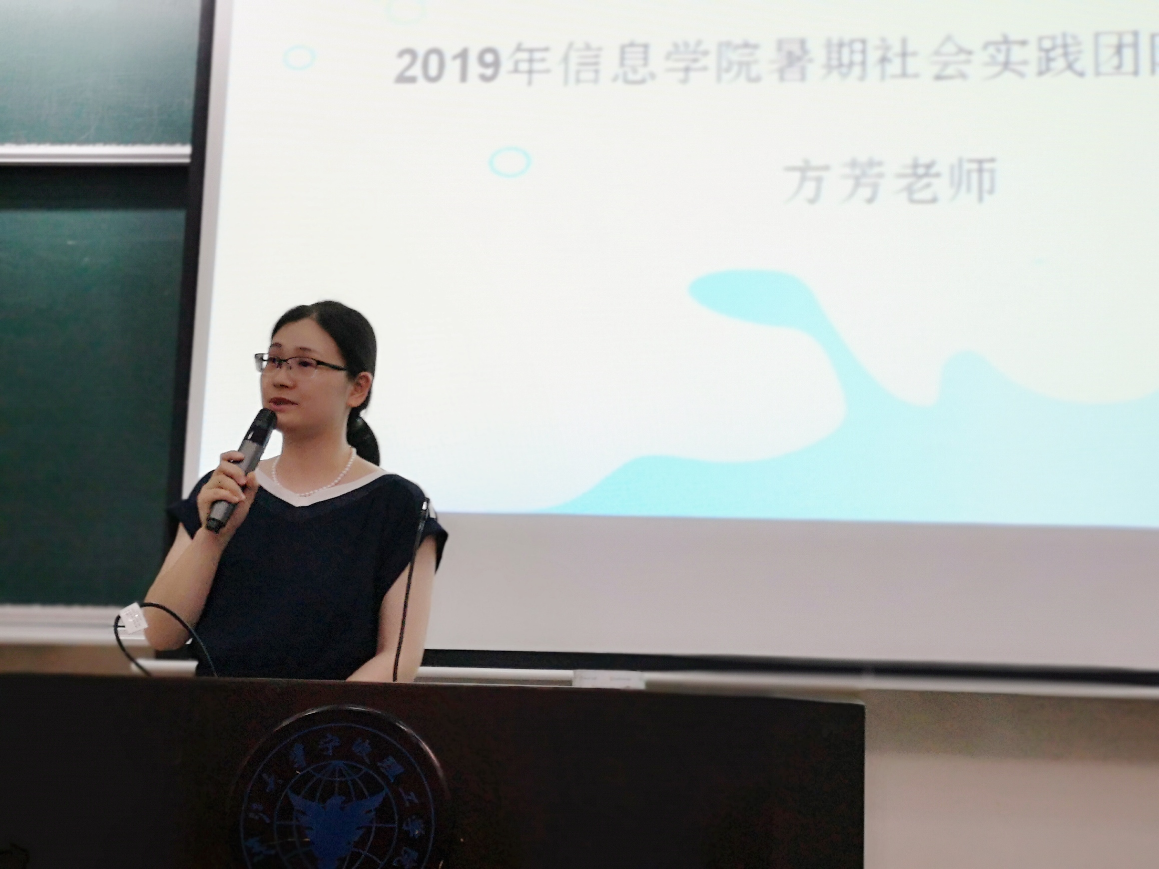 学院党委副书记方芳老师发表讲话,她与同学们讲述了自己曾经参与暑期社会实践的经历,毫无保留地分享了属于她的经验,并对同学们提出四点希望:一是珍惜实践机会,练就过硬本领,坚持学以致用、知行合一,长见识、强本领;二是发挥专业优势,服务社会大众,传播科学技术、服务社会,树形象、展风采;三是紧跟时代步伐,感知时代脉搏,体验时代变迁,不忘初心、砥砺前行,勇于担当、开拓进取;四是牢固树立“安全第一”思想,安全工作放首位,做到计划周详、严守纪律、服从指挥、团结协作。