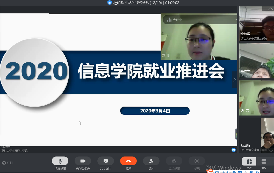 受疫情影响,毕业生就业工作遭遇了前所未有的严峻挑战,为充分调动学院师资力量和各方资源,确保本年度就业工作顺利有序推进,3月5日晚,信息学院召开“云会议”推进就业工作。学院院长黄进、党委书记胡超、党委副书记方芳,各研究所所长、全体支部书记及毕业班班导师参加会议。