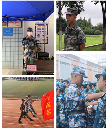 (退伍返校学生在校参与军训、防疫等工作)