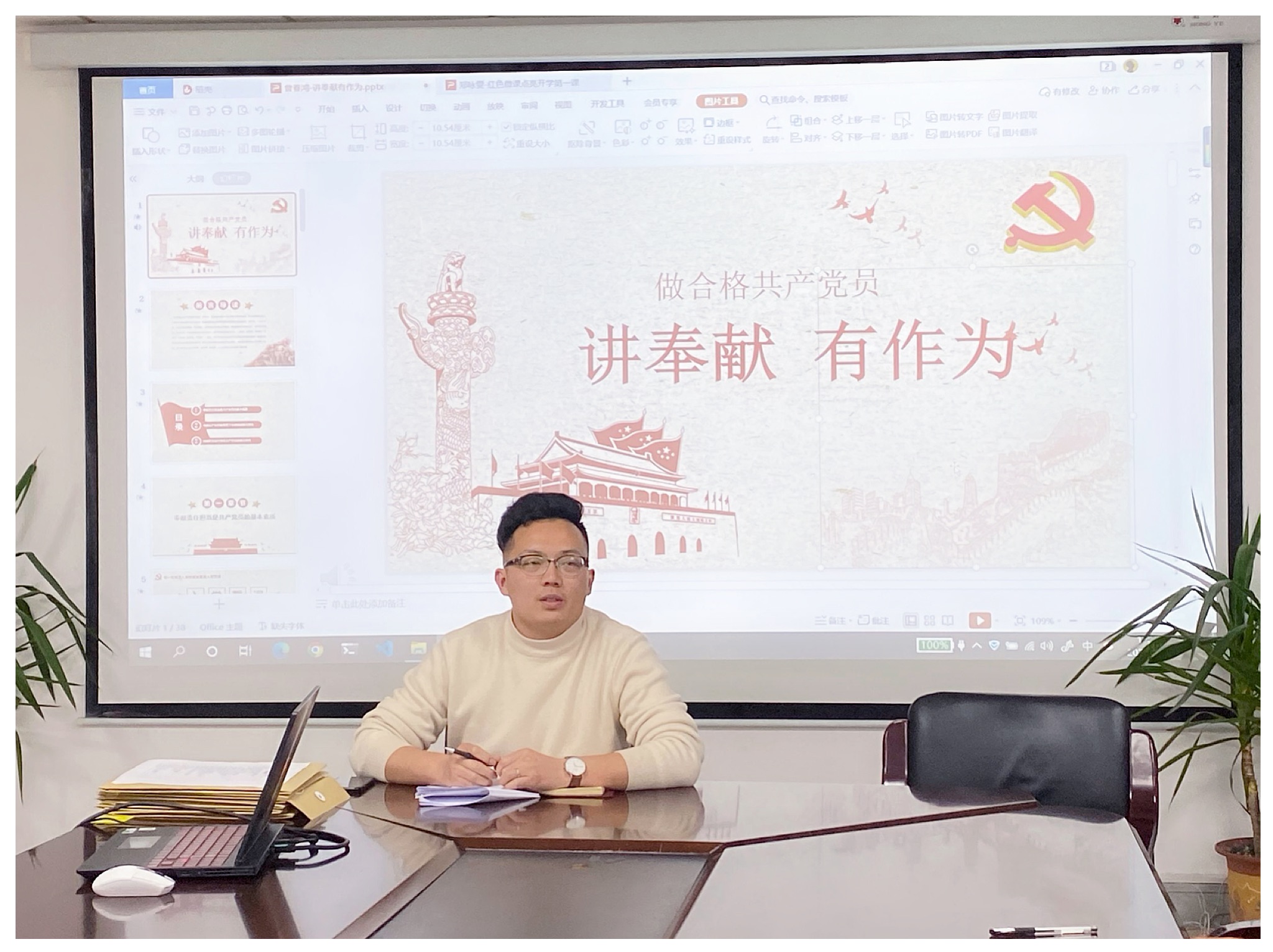 随后,郑咏雯同志以“中国共产党建党100周年——在疫情中领悟党史 牢记初心使命”为主题,结合自身经历畅谈了学党史、学英模事迹的心得体会和现实意义,进一步增强党员干部的爱国热情和民族自豪感,激励党员为实现“两个一百年”奋斗目标。曾春鸿同志以“合格共产党员——讲奉献,有作为”为主题进行演讲,从共产党员的基本素质向我们展示了作为一名合格共产党员应该怎样讲奉献有作为,脚踏实地做好本职工作,为学校和学院的发展贡献自己的力量。