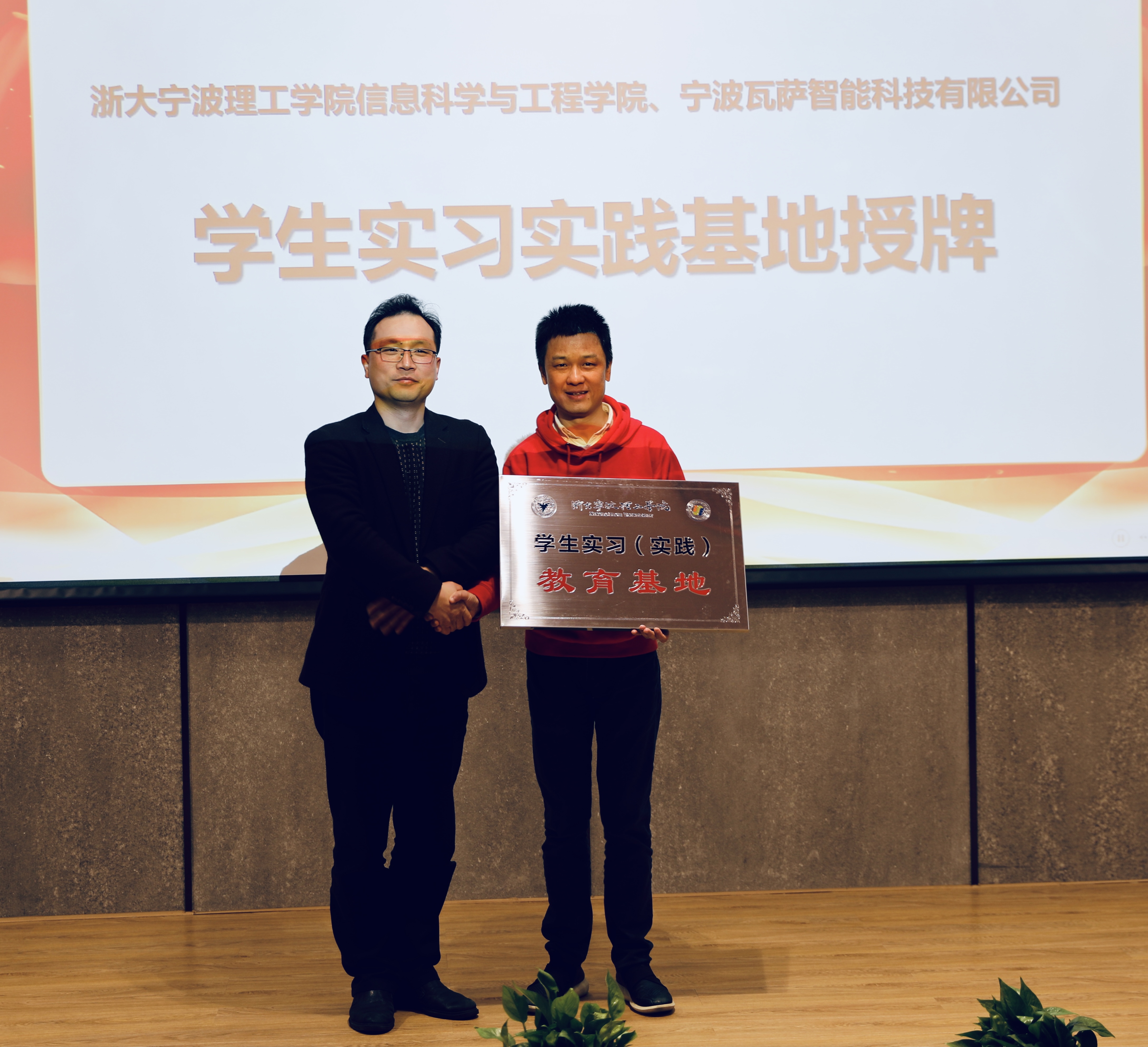 为深化校地战略合作,全面提升社会服务能力水平,加强与在甬企业的深度合作,4月7日晚,信息学院与宁波瓦萨智能科技有限公司进行了学生实习实践基地授牌仪式。宁波瓦萨智能科技有限公司总裁虞锋及人力资源经理吴莉等企业代表出席,信息学院党委书记应中元、党委副书记方芳等学院师生代表参加了授牌仪式。
