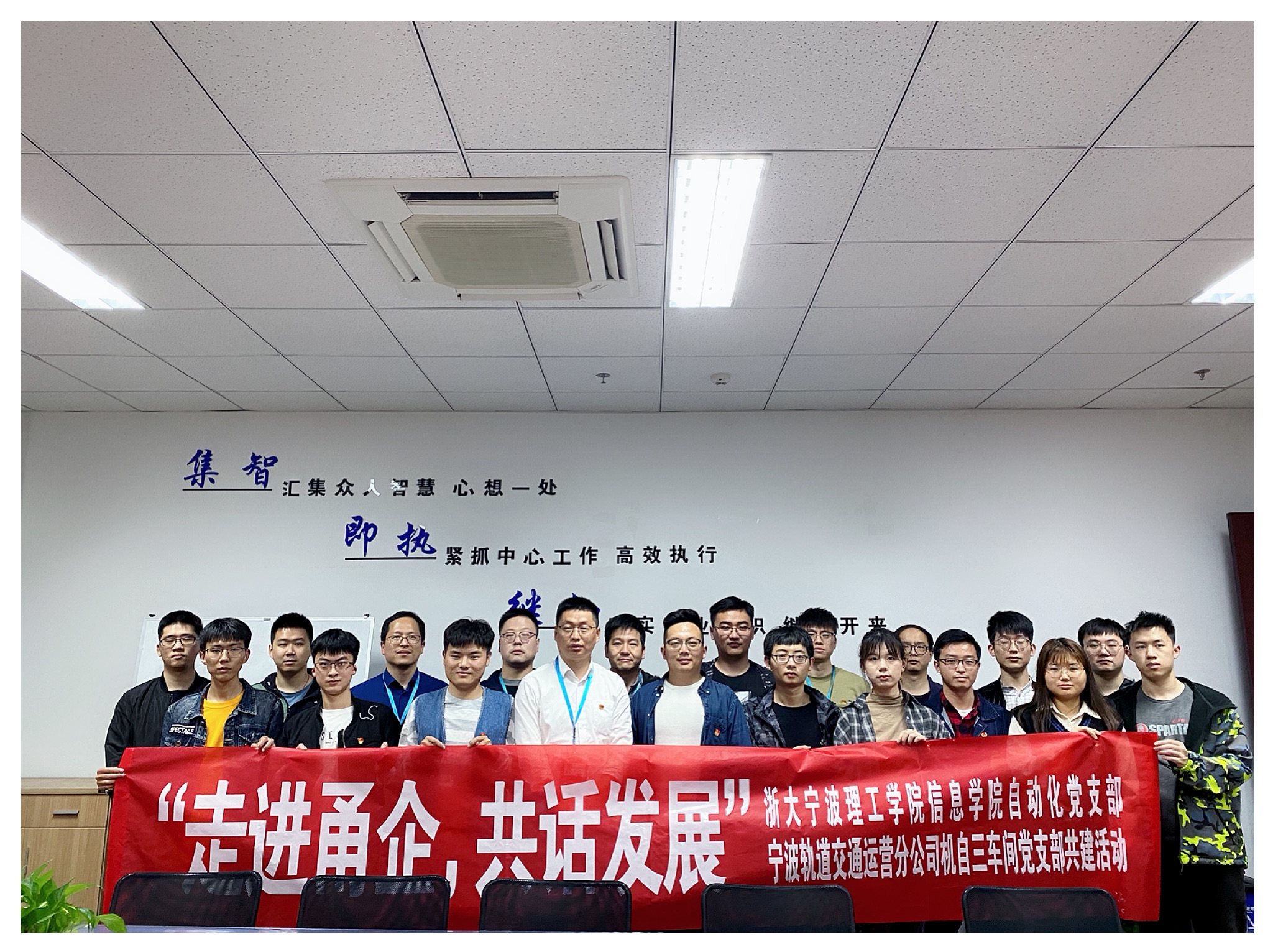 2021年4月23日下午,为深入贯彻落实党的十九届五中全会精神,加强党支部建设,互享资源,共促发展,信息学院自动化学生党支部书记金智展带领支部成员与宁波轨道交通运营分公司机自三车间党支部开展了“结对共建”主题实践活动。