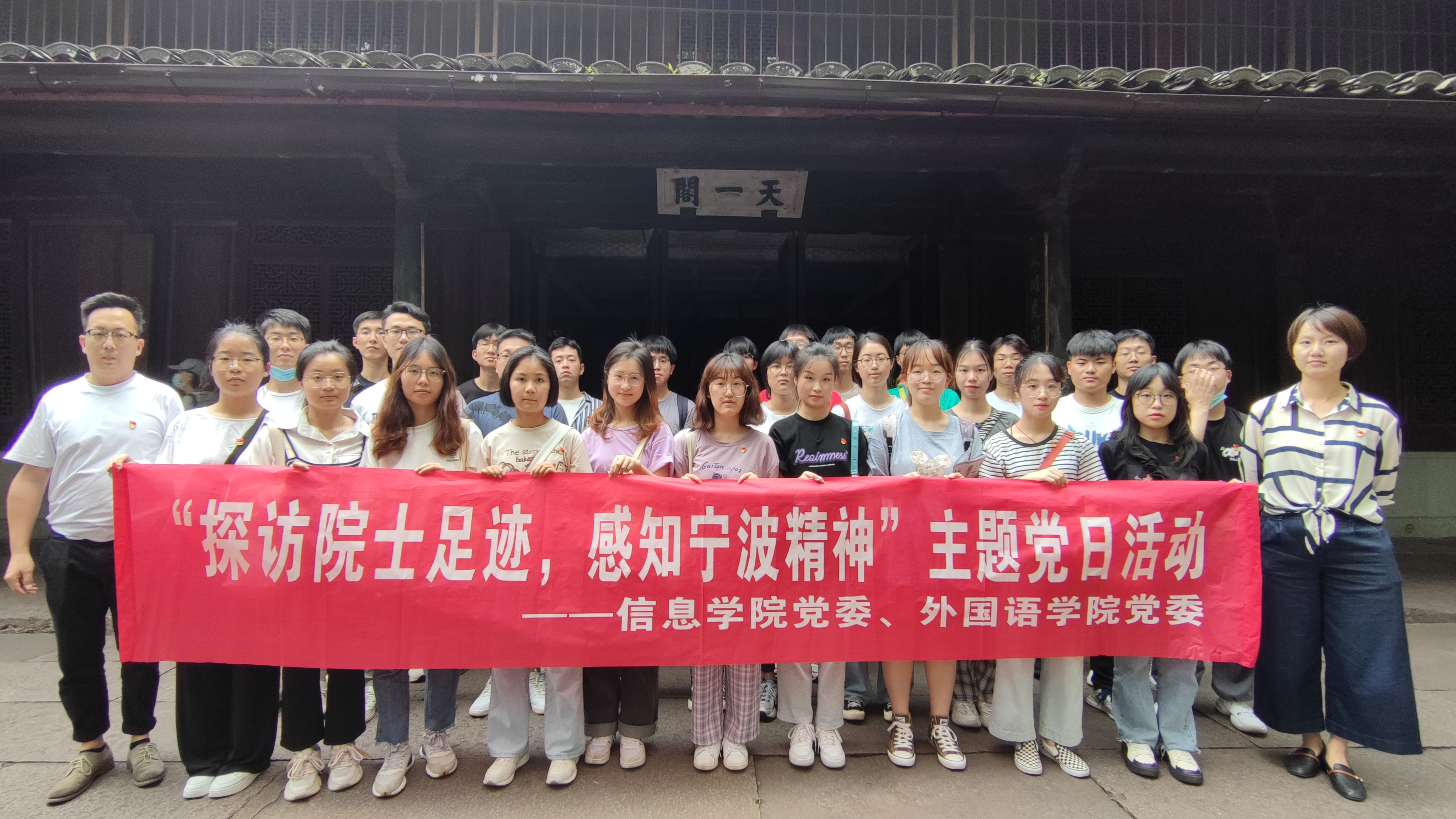 为进一步增进学生党员对宁波人文的故事,宁波传统文化的了解,深入感悟宁波“四知”精神,了解宁波的发展,信息学院与外语学院师生党员于2021年5月28日下午开展了“探访院士足迹,感知宁波精神”的党日活动。
