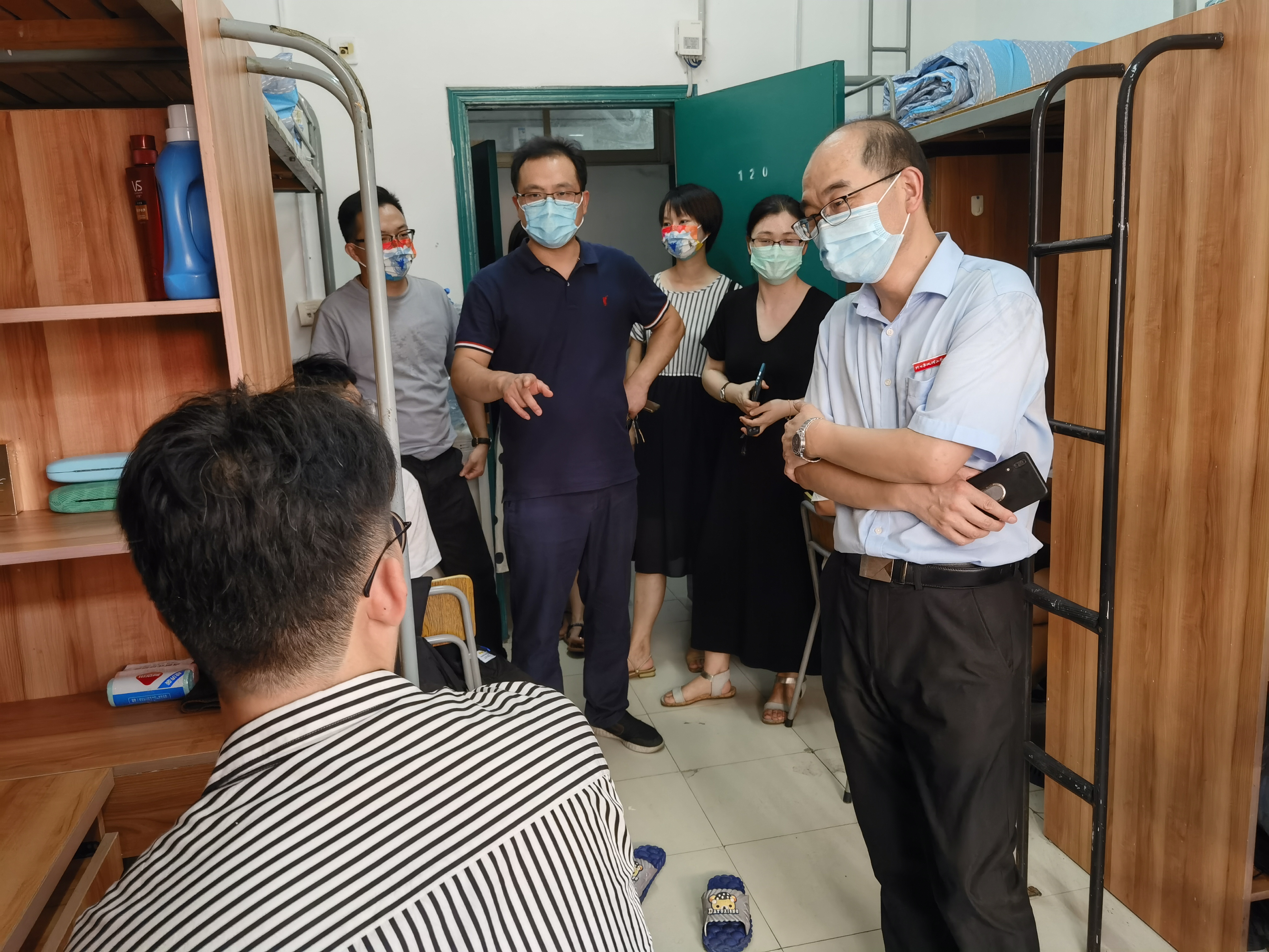 8月28日下午,在学校杨灿军副校长的带领下,信息学院党委书记应中元、副书记方芳及辅导员们,共同走访了新生寝室。老师和同学们拉拉家常,聊聊入学后的感受,细致询问生活上有没有困难,并给予了学习上的温馨提示,走访过程中多才多艺的新生们还为来访的领导老师们即兴演奏了一曲,大家谈笑风生,氛围融洽,新生们充分感受到了来自学院和学校的关心和关怀。