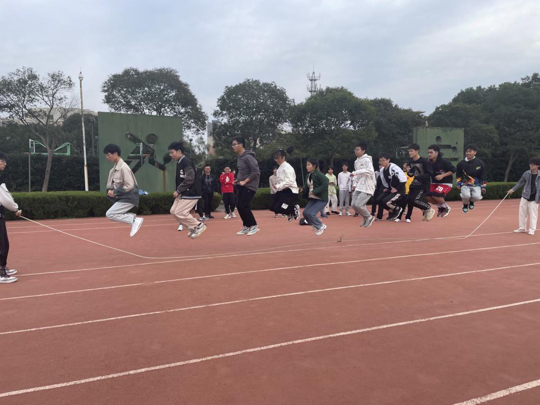 最后进行的是跳长绳比赛,裁判员哨声响起,比赛正式开始。队员们迎着大绳以飞快的速度跳了起来,相互配合着节奏,尽量减少失误,看得场外观众惊叹不已,不约而同地为其数着次数。同学们积极参与,共同营造起“激昂”“向上”的良好氛围,展现了信息学子拼搏进取的体育精神。