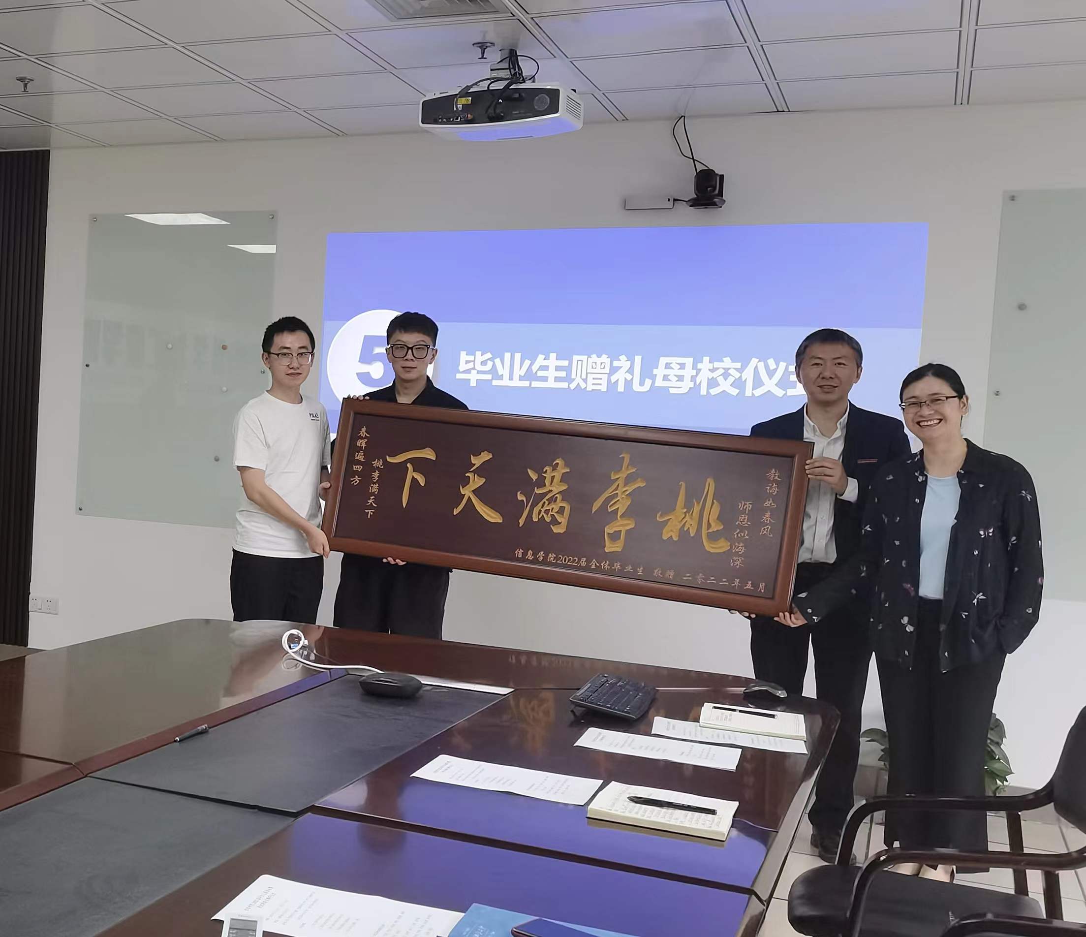 5月25日下午,信息学院2022届毕业生感恩母校捐赠仪式在学院石鳞902-1会议室隆重举行,学院党委副书记郑毅、方芳、学工办教师代表等参加了仪式。
