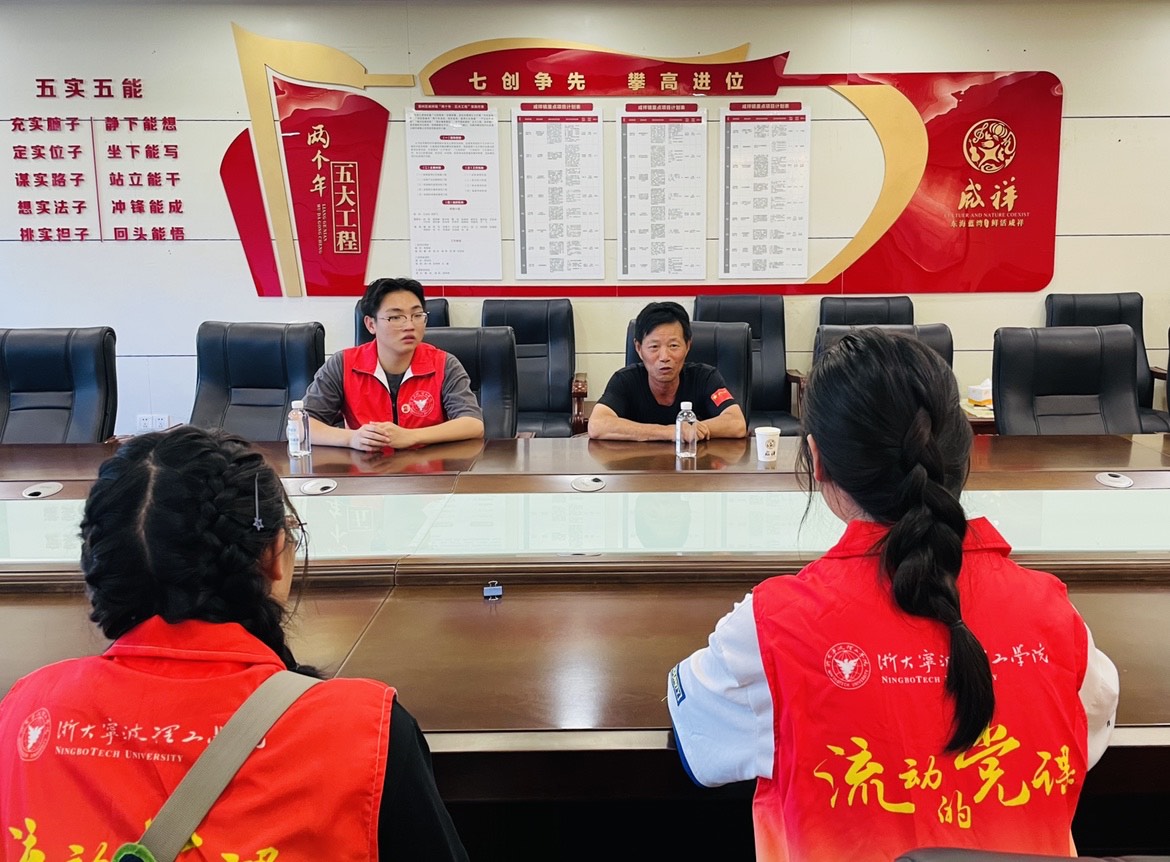侯忠德,是咸祥镇的一名老党员,曾参加过对越自卫反击战。作为这次“流动的党课”的讲述者,当谈起家乡的变化,他感慨万千:“参加战役的时候,一个星期只能吃两块小的压缩饼干,吃不饱饭,要拿着锄子上山挖草根。”侯忠德说,“现在房子搞得好了,马路造得宽了,孙子有更好的条件可以好好读书了,像以前读书可是很困难的。很高兴看到我们浙大宁波理工学院的学生能够传承红色基因,在老师的带领下为咸祥的发展提供科技支持。”