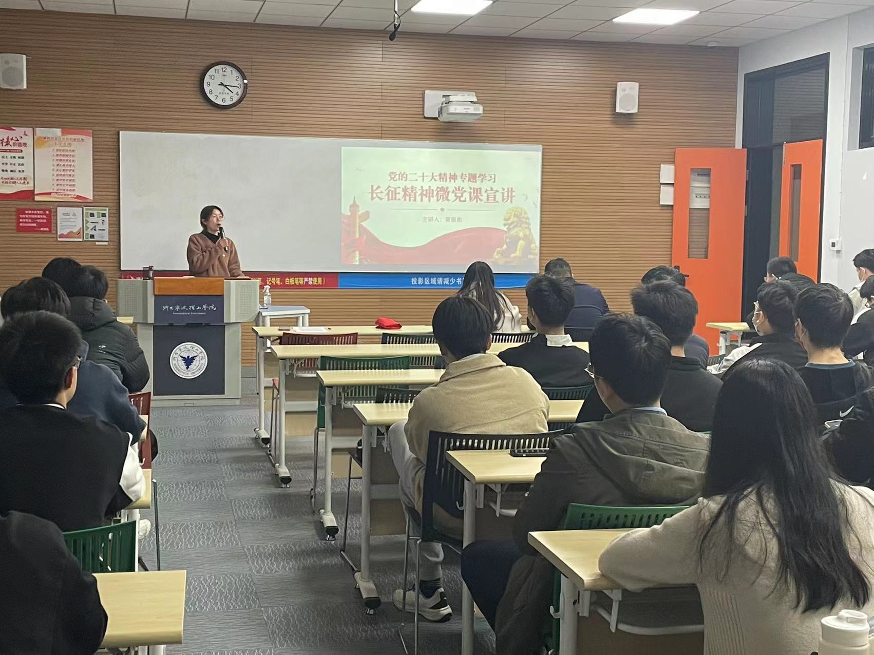 信电学生党支部黄振彪老师以“弘扬长征精神,新征程再出发”为题,围绕战争先锋、和平楷模、身边榜样三个不同时期的典型人物或群体展开,讲述不同时期不同人物故事,从故事中引导党员同学们学习他们身上展现出的长征精神。黄老师强调,一代人有一代人的梦想,一代人有一代人的“长征”,长征精神需要更多的年轻人去传承和践行。他呼吁在座的党员同学,作为新时代的追梦人,大学生奔走在新时代的长征路,应该朝气蓬勃,努力奋进。