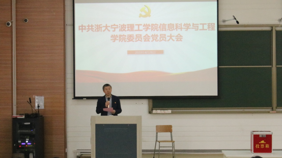 4月26日,信息学院党委组织召开了全体党员大会,学院全体师生党员参加大会,会议由学院党委书记郑毅主持。