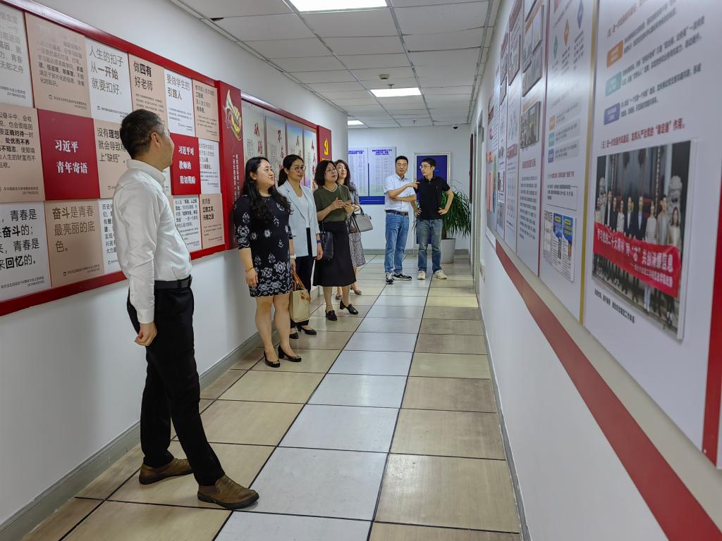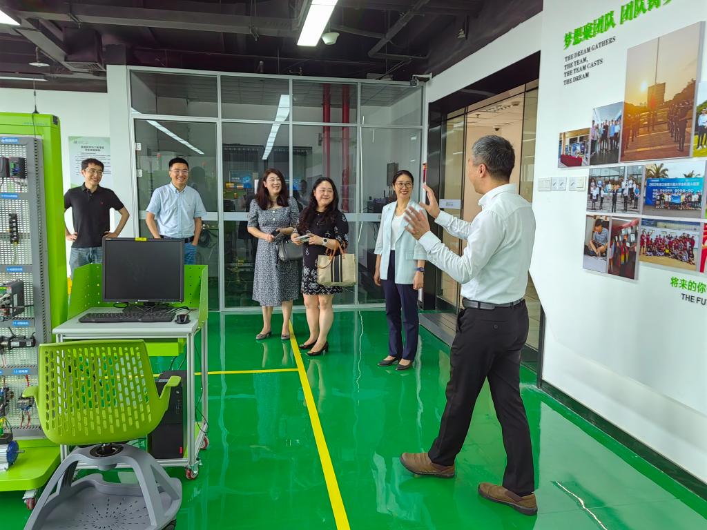 信息学院党委书记郑毅为王杨书记一行介绍了学院办学成果及党建工作阵地建设情况;在沈非凡副院长带领下,来访嘉宾参观了学院5G工业互联网创新实验室并给与了高度的评价和赞许。