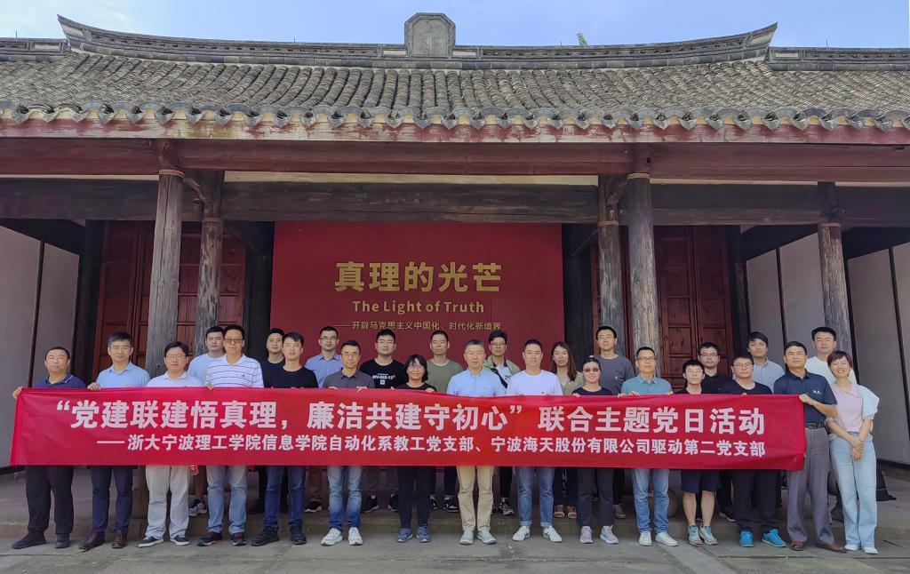 为进一步推动校企党建共建共联,5月26日信息学院自动化系教工党支部联合宁波海天驱动第二党支部,赴慈城真理园开展“党建联建悟真理,廉洁共建守初心”联合主题党日活动。海天驱动技术总监张新梅博士、第二党支部书记王宇、支部党员代表,信息学院党委书记郑毅,自动化系教工党支部书记刘毅华及支部党员代表30余人参与了活动。