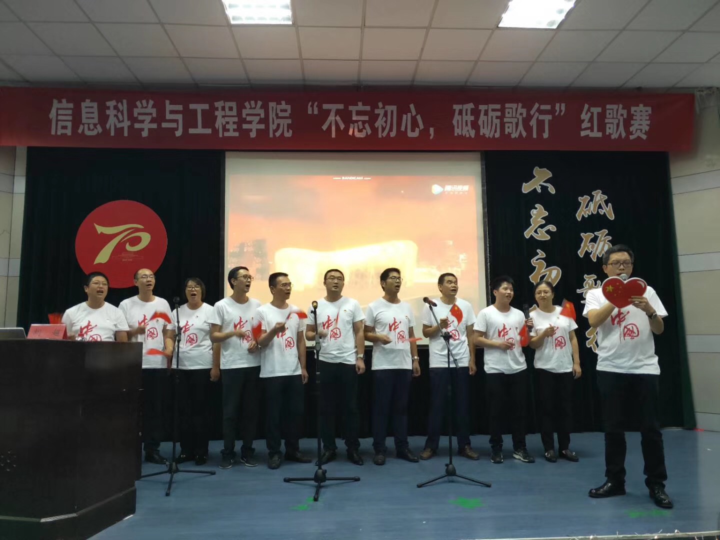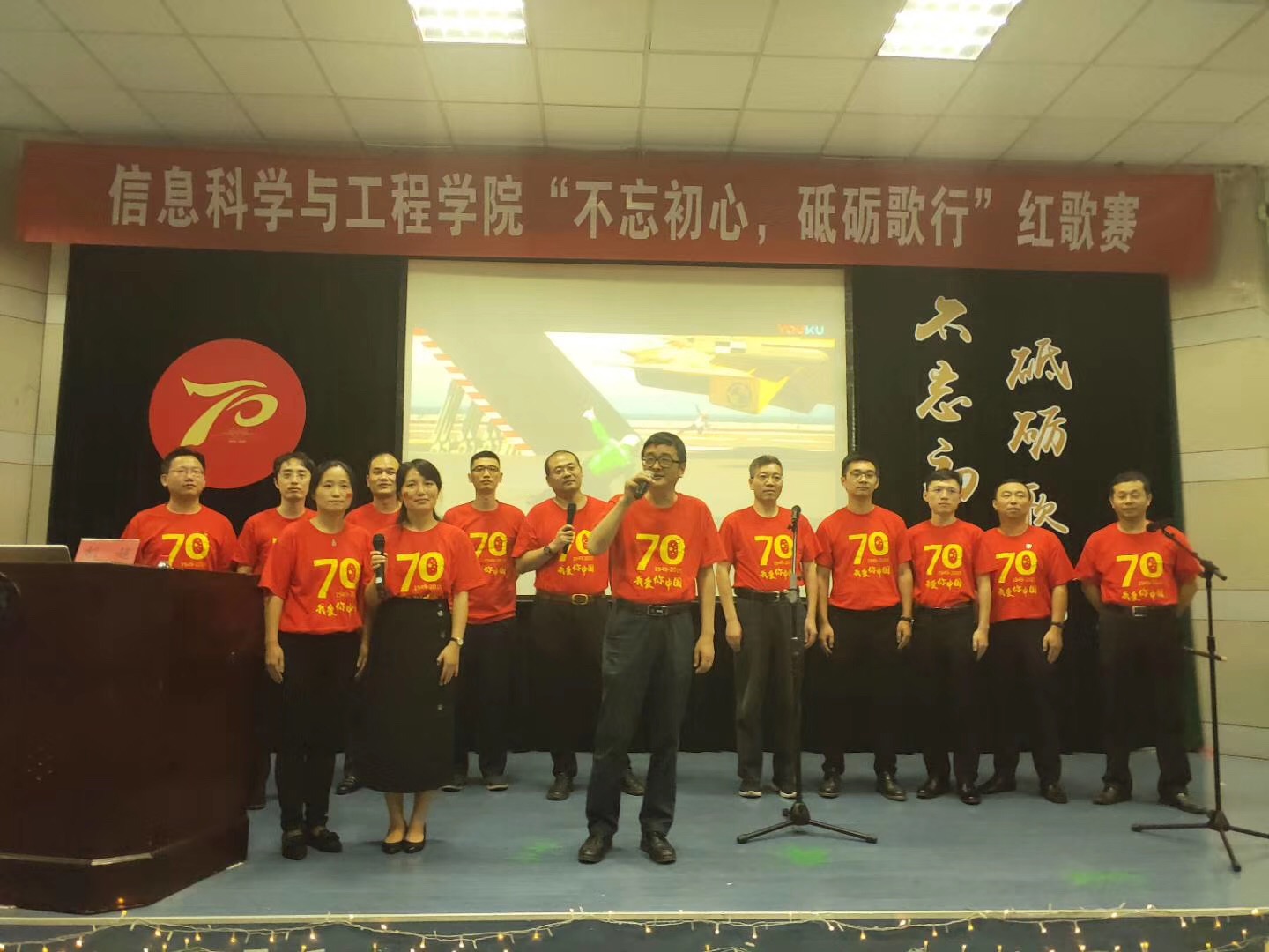 9月25日,信息学院“不忘初心、牢记使命”主题教育动员会暨“不忘初心、砥砺歌行”红歌大赛在nf103隆重举行。信息学院领导班子,党委成员,各支部党员、积极分子及新生代表共计400余人一起,歌颂祖国,歌唱时代,向祖国母亲70华诞献上最真挚、最热烈、最美好的祝福!
