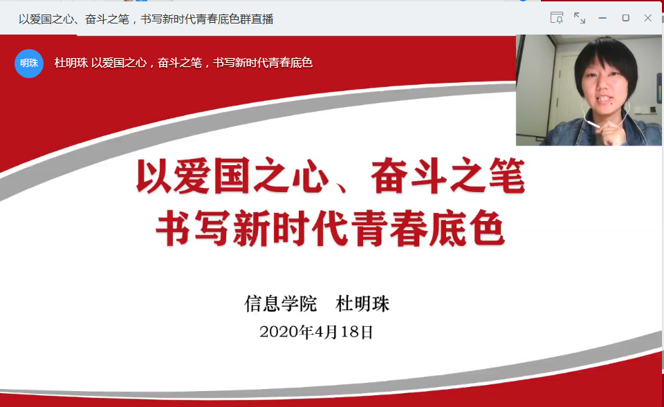 信息学院党委积极响应“停课不停学”号召,精心挖掘战“疫”育人元素,用好战“疫”新素材,依托“云党课”,积极开展党员在线教育,不断激发学生爱国之情与强国之志。