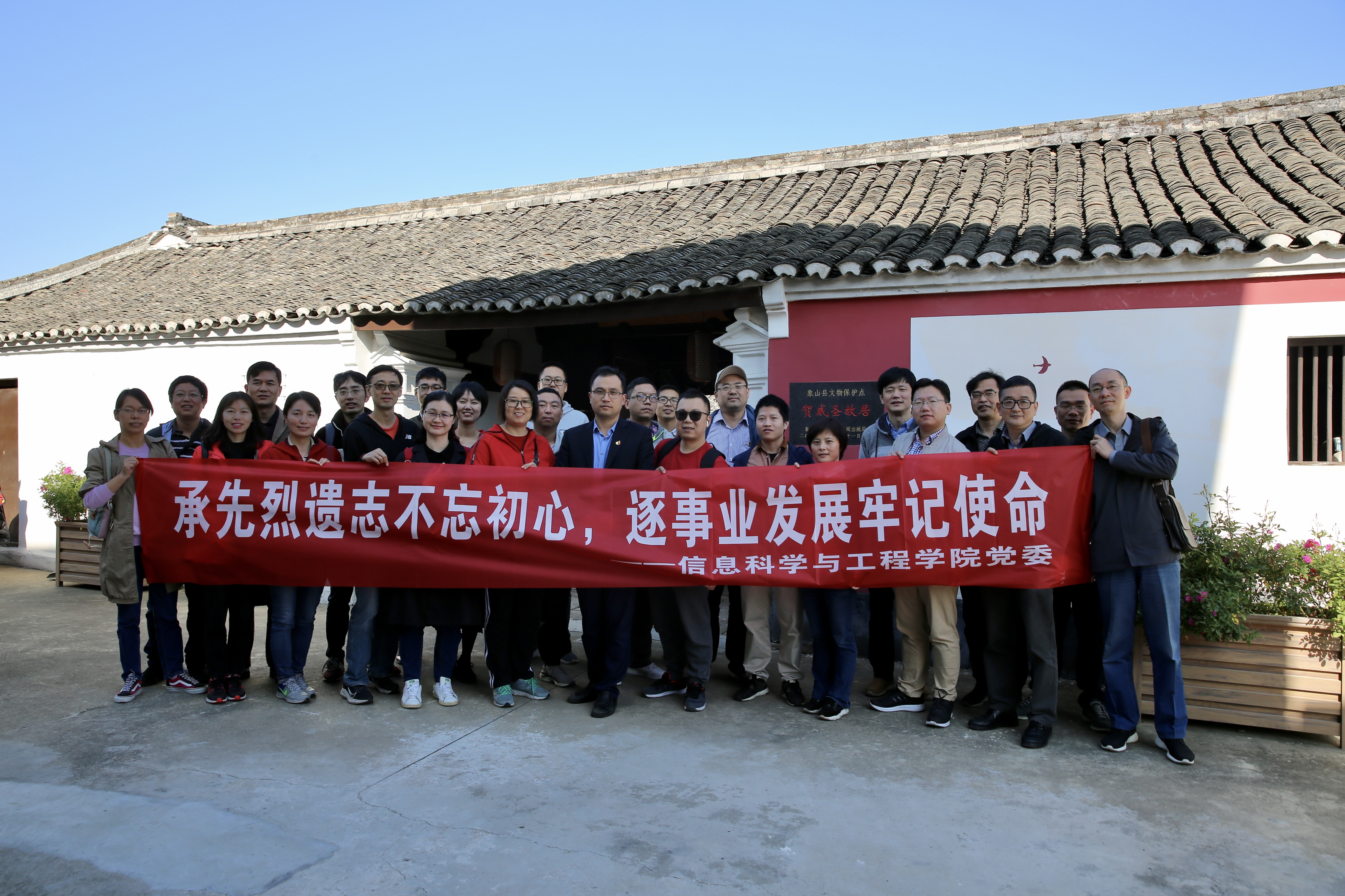 11月14日,信息学院教工党员赴象山开展“承先烈遗志不忘初心,逐事业发展牢记使命”主题党日活动,分别参观学习了贺威圣故居、殷夫故居和东门岛门头山海防古迹爱国主义教育基地。瞻仰烈士遗志,铭记爱国情怀,凝聚前行力量。