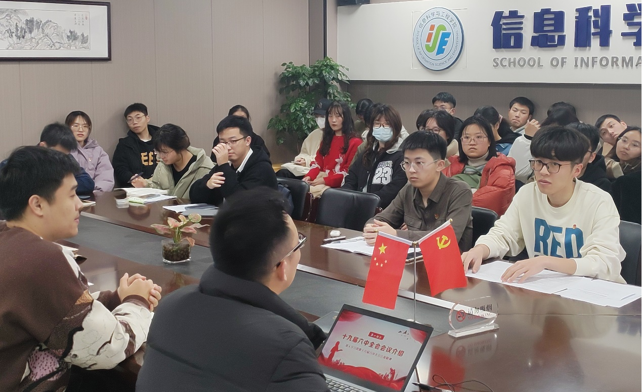 为深刻贯彻党的十九届六中全会精神,深入学习十九届六中全会思想,11月30日,信息学院自动化学生党支部在石麟大楼902-1开展“学习贯彻党的十九届六中全会精神”专题党课,党课由支部书记金智展主讲,支部全体党员、重点发展对象以及积极分子参加学习。