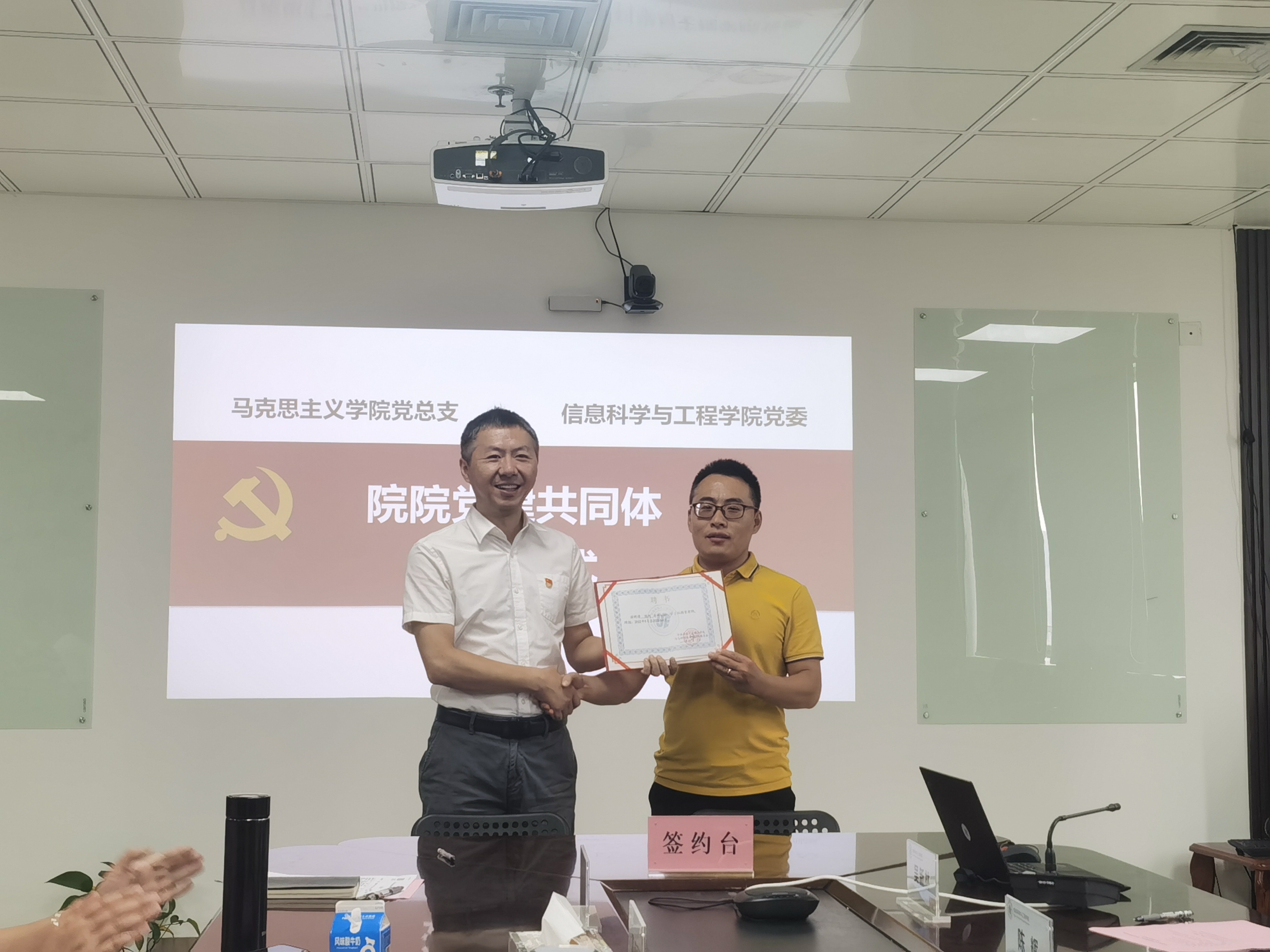 2022年9月19日,信息学院党委、马克思主义学院党总支党建共同体共建签约仪式顺利开展,双方就如何以党建引领促进学科专业建设、提高人才培养质量,提升服务区域经济发展能力,深入推进“大思政课”建设进行了探讨。信息学院党委全体班子、支部书记,马克思主义学院党总支书记伍醒、副书记张维雅,院长助理吴新林,办公室主任刘杰等参与此次会议。