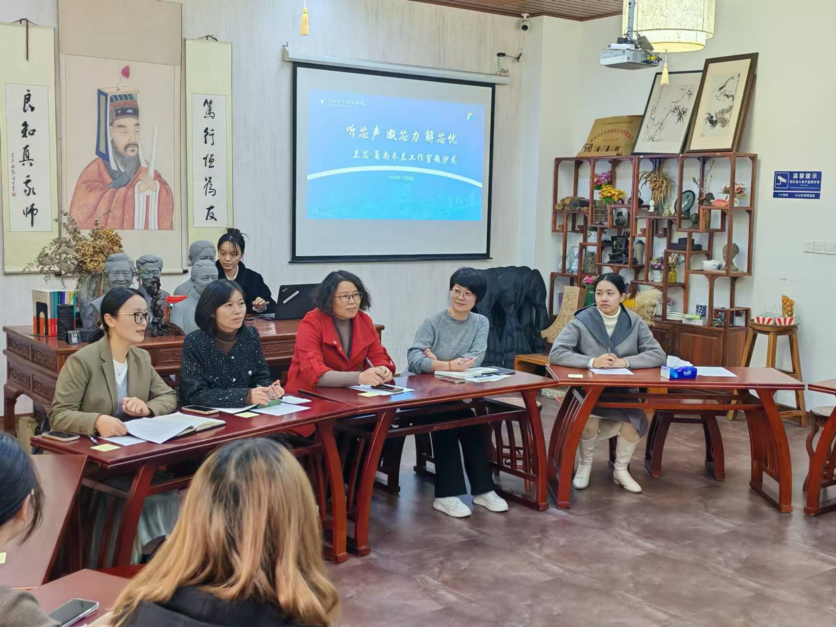 12月3日,我院兰芯·甬尚木兰工作室在充满文化底蕴的阳明学堂成功举办了一场以“听芯声,凝芯力,解芯忧”为主题的沙龙活动。