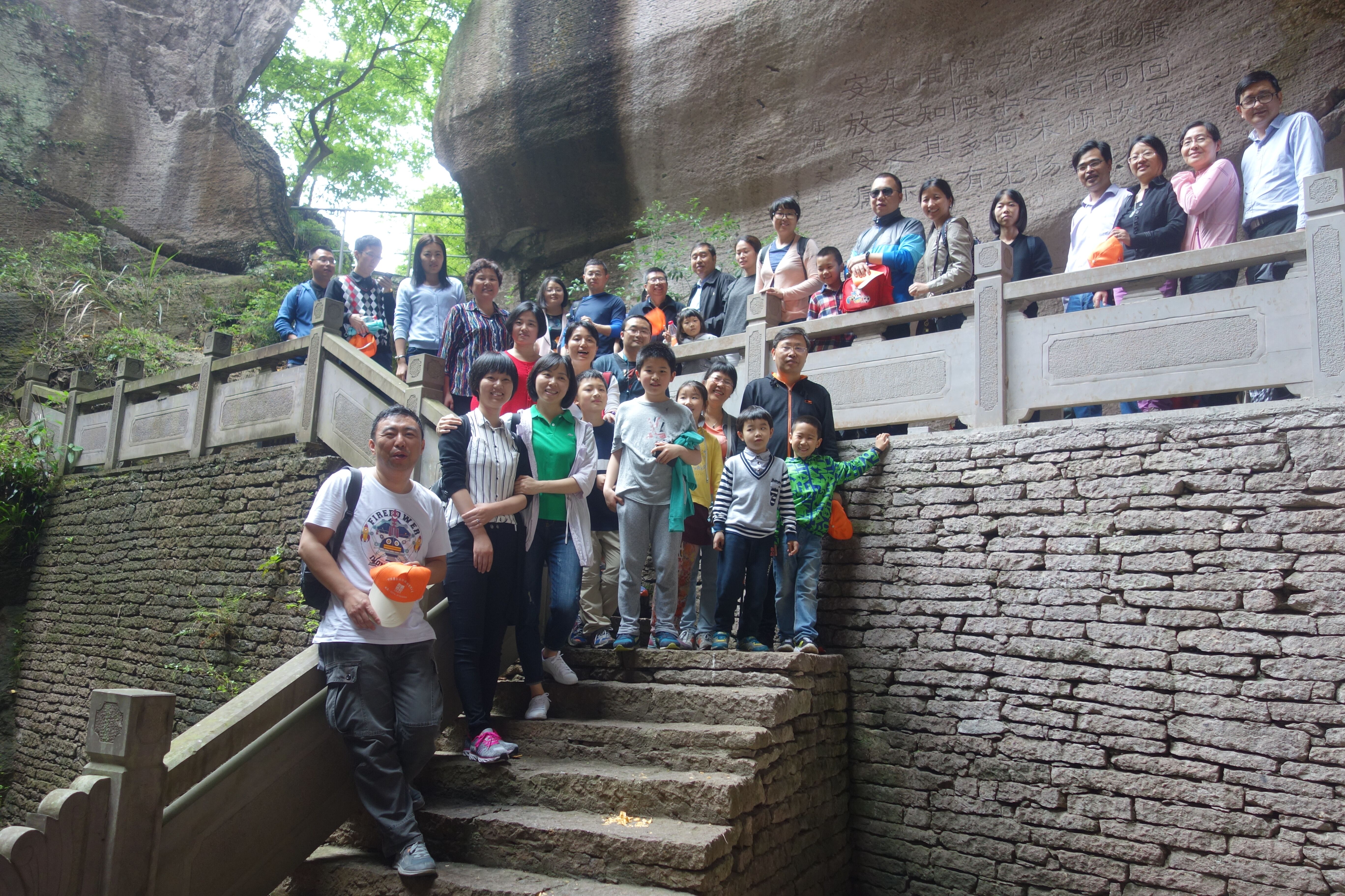 上午,教师们登山游览宁海伍山石窟。伍山石窟(不周神山景区)位于宁波市宁海县长街镇境内,地处三门湾畔,东邻岳井洋,与象山县隔海相望;距宁海县城约25公里,距宁波市100公里。伍山采石是传统的竖井开采工艺。因风与鸟兽将种子通过竖井口子带入洞窟,经过雨露滋润,形成了洞窟内野生花树藤萝援壁凌空、风姿各异的奇异景观。千百年来,大自然与古代工匠共同在伍山石窟创造了神奇壮美世界。老师们登山既欣赏了秀丽景色,又锻炼了身体。