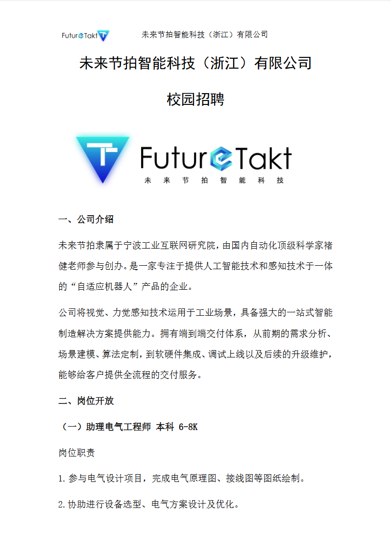 【招聘】未来节拍智能科技(浙江)有限公司校园招聘简章