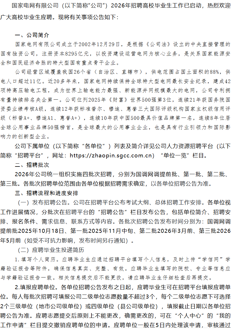【招聘】国家电网有限公司招聘简章