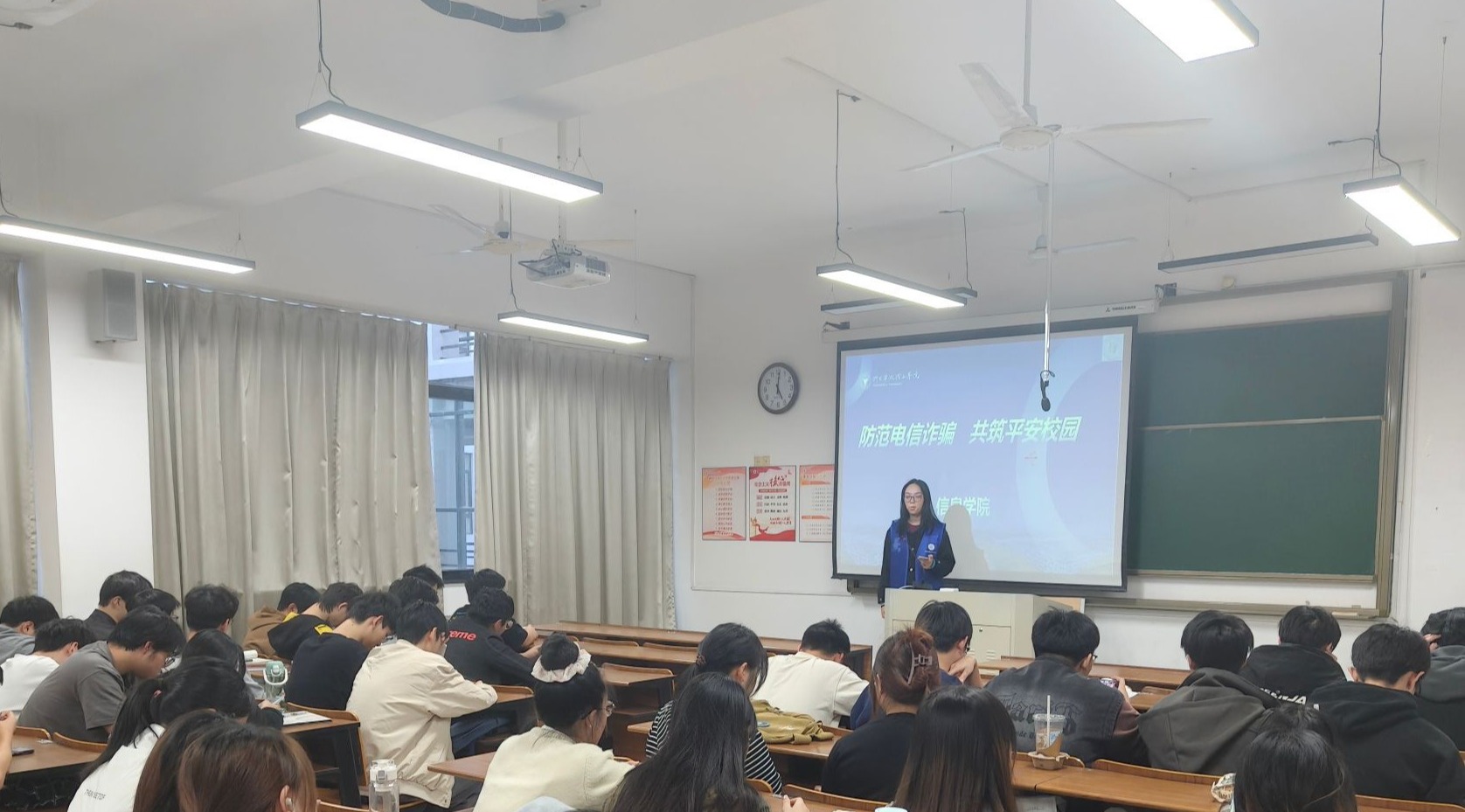 为有效应对校园电信网络诈骗高发态势,提升学生安全防范意识,我院芯青年宣讲队于10月19日-10月29日面向大一至大三全体班级,成功开展了一系列全覆盖、多轮次的反诈主题宣讲活动,累计覆盖学生近千人次,在同学中掀起了学习反诈知识、提高辨别能力的热潮。