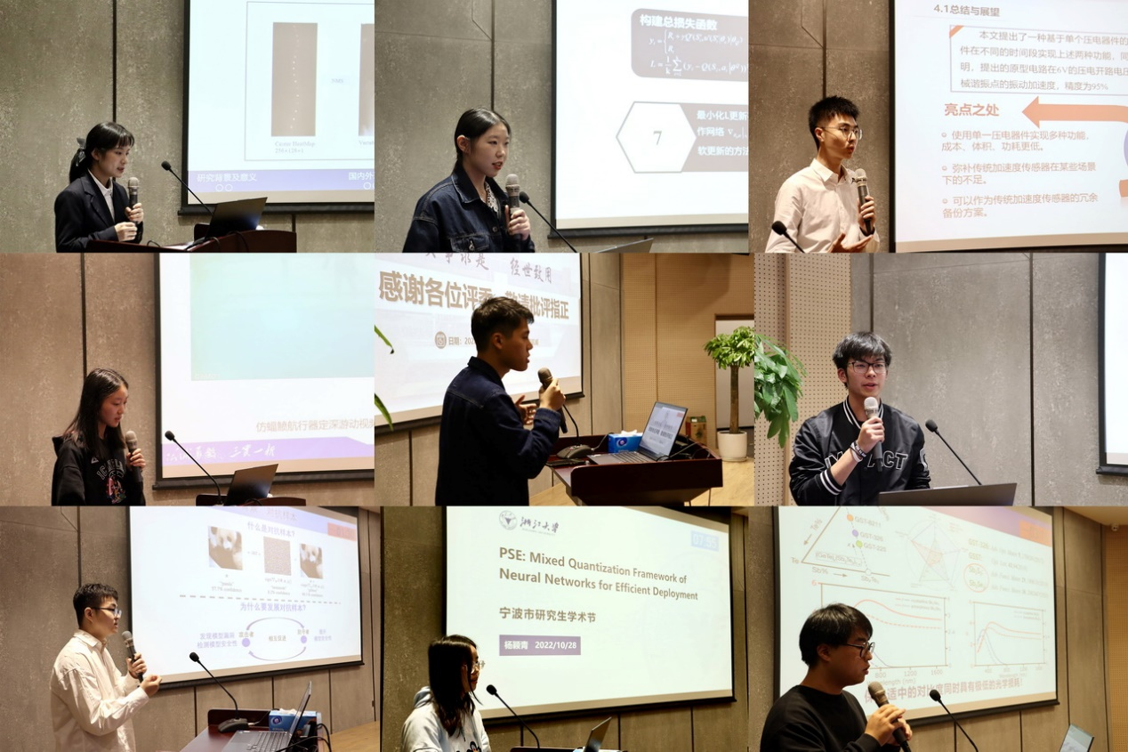 本次报告会涉及到风格迁移、集成电路、能源管理等多个研究领域,内容十分精彩,为观众们献上了一场激情饱满的学术盛宴,同时现场评委老师的提问指导,更是将报告会观众们的热情程度推向高潮。来自宁波大学的博士生陈航威同学获得“学术之星”金奖和最佳报告奖,浙大宁波理工学院杨颖青同学获得最佳提问奖。整场活动在紧张热烈的气氛中进行,专家们的精彩点评和同学们的积极提问不断碰撞出思想的火花和智慧的光芒。在场学生纷纷表示受益匪浅、兴致盎然、意犹未尽。