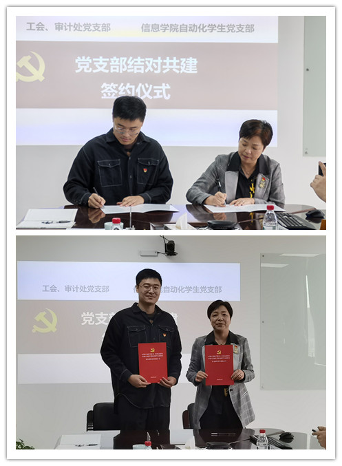 工会、审计处党支部、信息学院自动化学生党支部签订了支部结对共建的合作协议。双方就今后党建工作开展,合力共推基层党建工作水平提升,共享党建资源,共同推进党建质量提升达成共识。