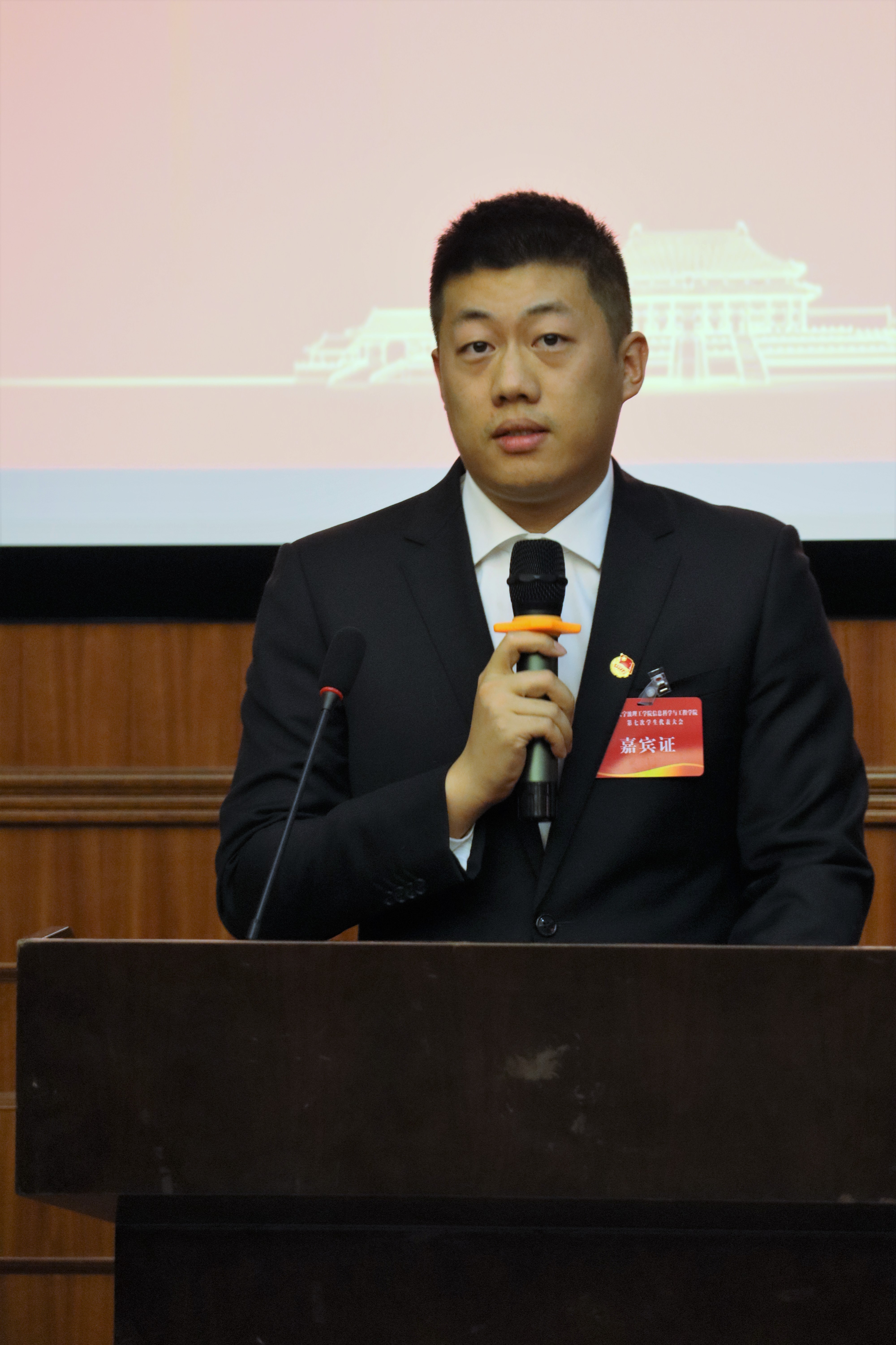 机能学院团委书记董海云代表兄弟学院致辞。他对大会的胜利召开表示热烈祝贺,并希望在今后的工作中两院学生会可以共同探索学生会工作的创新模式,加强沟通,互相支持。