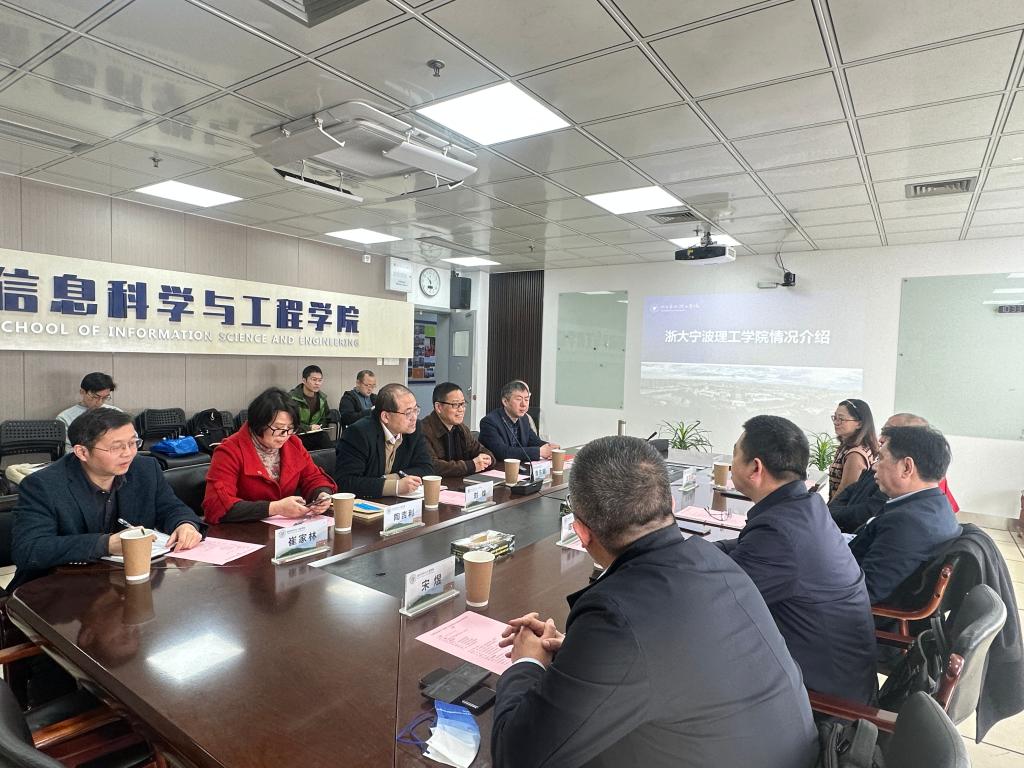 2023年3月28日上午,原宁波市委机要保密局副局长梁俊、宁波爱信诺航天信息有限公司总经理庞胜民、副总经理陈宏远、总经理助理侯若兰、商密研究院院长宋煜等一行来我院,就省密码重点实验室共建等事宜进行沟通交流。学校副校长鲁东明、科研处、信息学院相关负责参加了交流会。