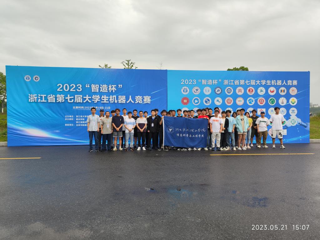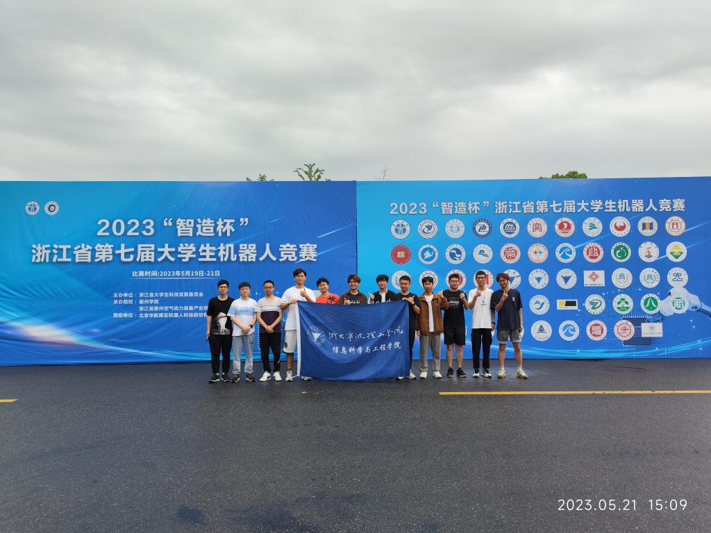 第七届浙江省大学生机器人竞赛于2023年5月18日至21日在衢州学院举行。经前期校内培训和选拔,共优选出12支队伍参加了超市机器人挑战赛、小型机器人足球团体赛、运输机器人对抗赛、水下机器人四个项目比赛。经过3天激烈角逐,经过全体参赛师生齐心协力的拼搏,克服了调试时间短、赛场环境封闭、硬件条件限制等困难,我校8支队伍脱颖而出获得省级竞赛奖项,其中一等奖1项,二等奖4项,三等奖3项,和第六届机器人竞赛获奖成果相比,成绩稳中有进! 学生队伍涵盖大一至大四队,形成了合理的学生梯队,竞赛文化得到传承。