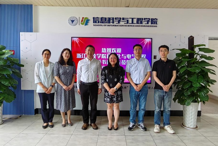 6月7日下午,浙江科技学院自动化与电气工程学院党委书记王杨,党委副书记陈泷,副院长周乐,专职组织员程莉莉一行来访信息学院调研工作。信息学院党委书记郑毅,副书记、纪委书记马利文,副院长沈非凡等热情接待并进行了座谈交流。