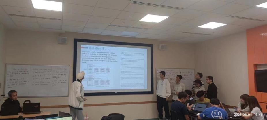在课堂分享中,同学们首先会讲述本组对已有资料以及自行搜集资料的学习成果,以小组讨论总结出来“What we know”,然后讲述小组在学习过程中遇到的困惑作为“What we don't know”,以及对于这个这块知识或问题的想法作为“What to find out”。于小组而言,通过讲述自己学到的加深了对知识点的理解,讲述自己仍然困惑以及想要搞清楚的可以使授课导师为其指点迷津,也可以通过小组间相互讨论激发新的思考。对于其他小组而言,通过听取其他组关于学习到的知识点的分享汇报,既可以加深印象,又可以查漏补缺,一次次思维碰撞对大家的思考深度和强度起到了良好的促进作用。在课程知识收获同时,个人表达能力以及合作交流能力也得到了锻炼。