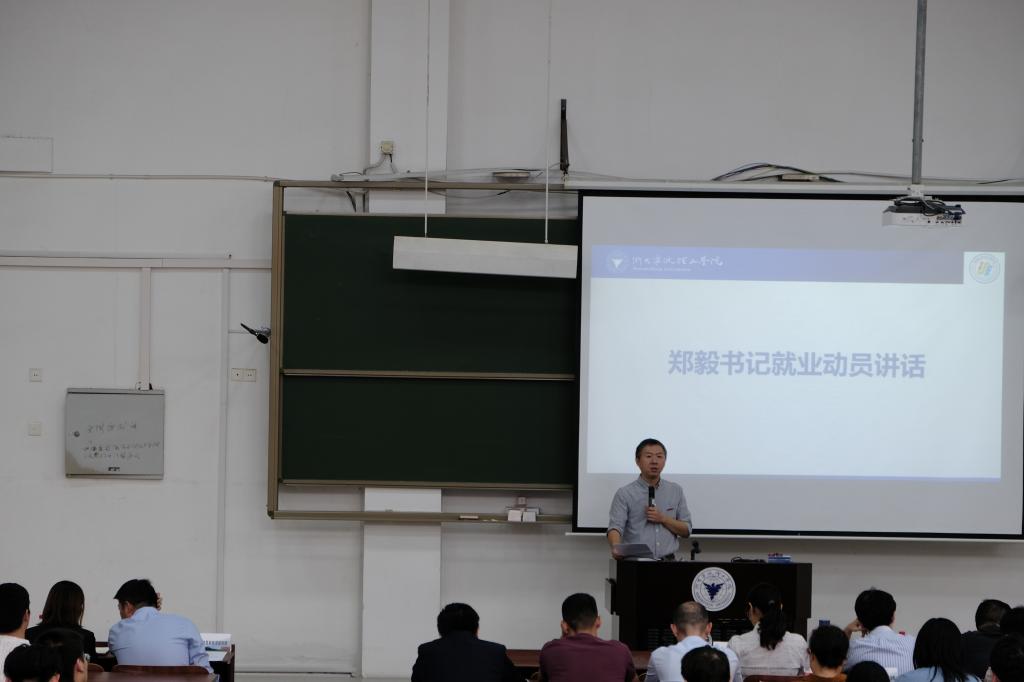 大会伊始,学院党委书记郑毅作就业动员讲话,要求同学们尽早明确目标、逐步积累资源、持续保持追求,并希望毕业生们要树立积极的就业心态,形成合理的就业选择,打拼无悔的职业生涯。