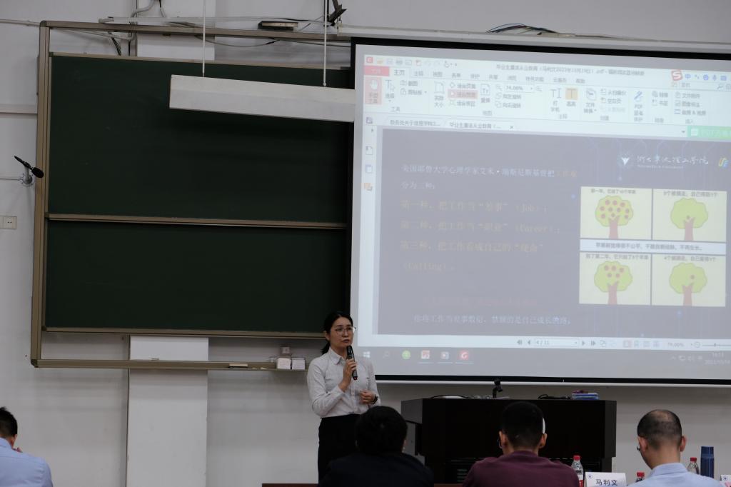 学院副院长陶吉利重点介绍了毕业设计安排,从毕业设计查重、抽查、答辩等方面对毕业生们提出了明确的要求。