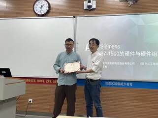 为提高本科人才培养质量,进一步推进校企合作深度融合和工业智能现代产业学院建设,2023年10月31日,信息学院邀请均普智能制造股份有限公司PLC工程师吴至有进课堂为电气工程及其自动化专业2021级同学讲授《电器与PLC控制技术》课程。信息学院副院长沈非凡为吴工颁发了企业导师聘书。