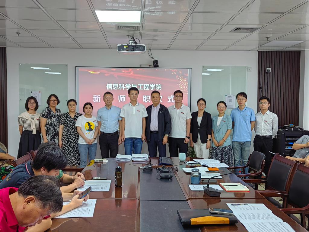 此次大会,学院举行了新教师入职仪式,郑毅隆重介绍了学院新入职教师,并代表学院向他们表达诚挚的欢迎。新教师的加入为信息工程学院注入了新鲜血液和新的能量。学院领导分别为新教师佩戴校徽并合影留念。