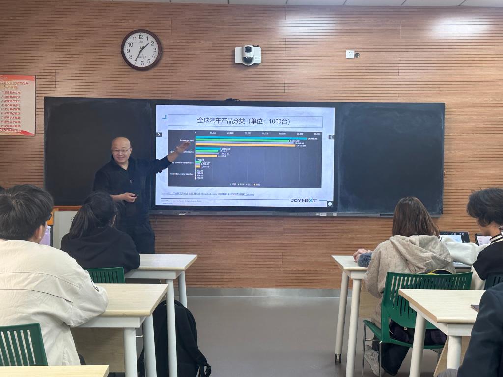 作为汽车电子领域的资深专家,杨鹏在课堂上分享国际国内汽车市场分析、车联网技术的最新发展趋势和应用场景,介绍了如何将车辆与车辆、车辆与人、基础设施、智能手机等移动设备实现智能互通等相关知识,引发了学生们的浓厚兴趣。同时,其还结合自身的工作经验,分享了在汽车电子行业的发展前景和就业机会,为学生们未来的职业发展提供指引。