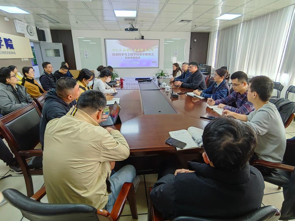 为进一步加强我院教师财务业务知识培训和财务风险防控意识,信息学院特邀党建共建单位审计处相关领导,开展财务专题讲座,即学院“明纪法,知敬畏,存戒惧,守底线”警示教育活动。此次培训会学校审计处处长陈敏东、业务人员王祖蓉到会,学院党委书记郑毅、副书记、纪委书记马利文,副院长裘君、沈非凡出席,学院全体行政人员、新入职教师和党支部纪检委员等参与。会议由学院党委副书记、纪委书记马利文主持。