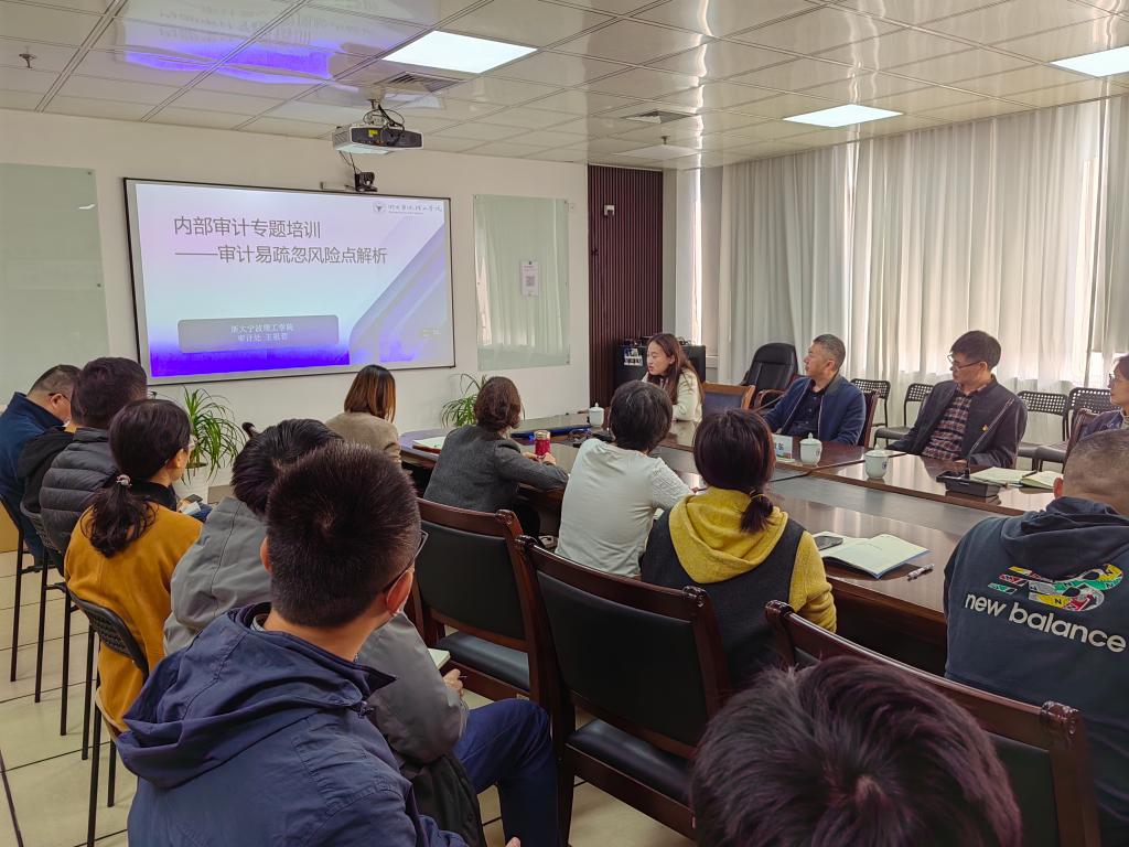 审计处王祖蓉老师以案说法,深入剖析了校内审计中发现的易疏忽的风险点,内容涵盖采购管理、合同管理、固定资产管理、差旅费管理、酬金发放、公务接待等多个方面多个环节,事无巨细,为在座老师们一一讲解分析到位。具体案例的讲解,与会人员更加清晰地认识到这些风险点可能带来的财务风险,并了解到了相应的防范措施,受益良多。