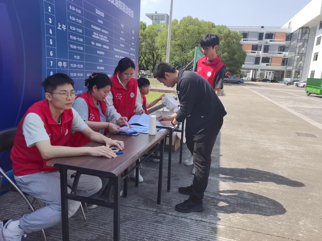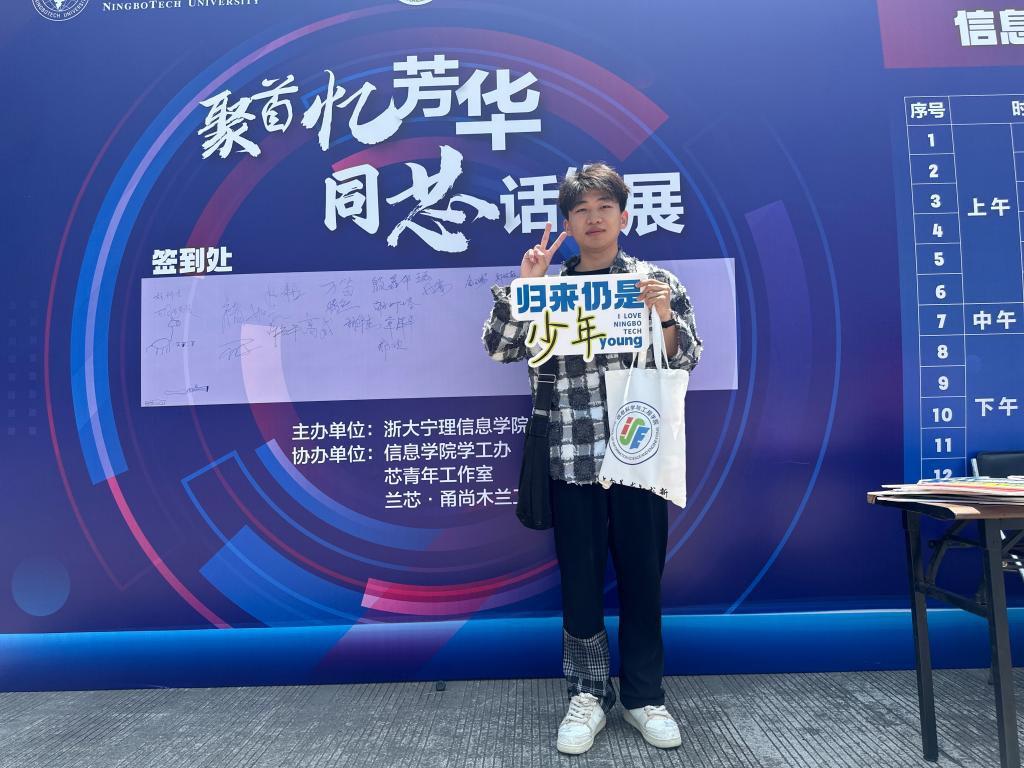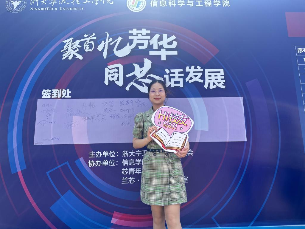当满面春风的校友们踏入熟悉的校园时,浙大宁理校园早已准备好热情的怀抱迎接他们的到来。上午8:30,在学校西门接待站,信息学院辅导员和志愿者们早早准备好迎接远道而来的校友们。