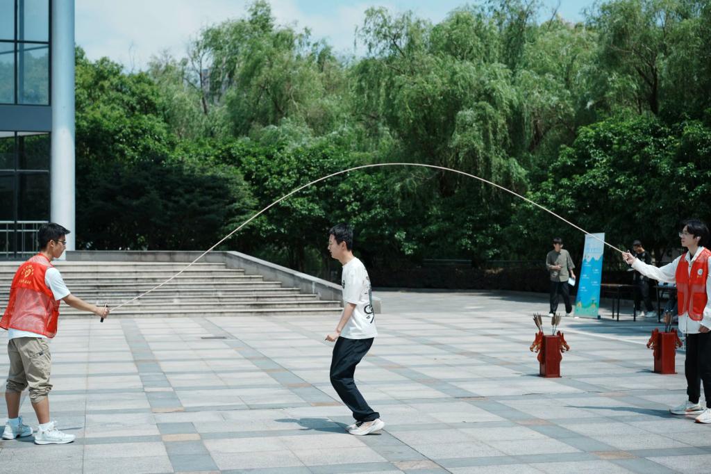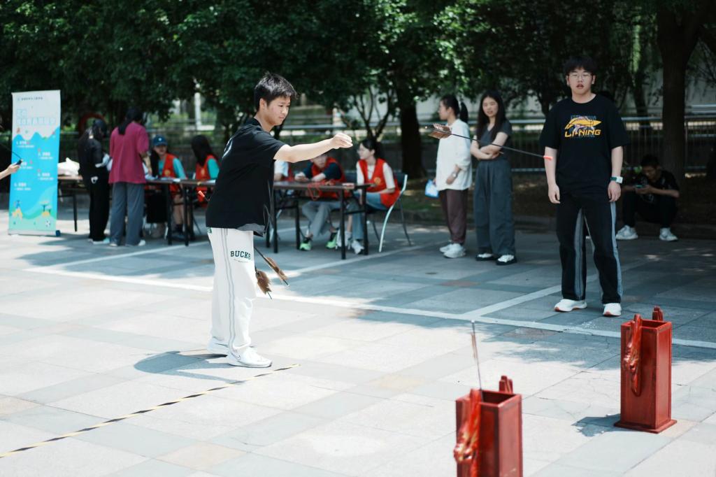 为丰富校友返校活动,同时搭建校友与在校生互动平台,学院组织了一场校友、在校生共同参与的趣味游园会活动。游园会共设置芯方向——心之所向(蒙眼走直线)、芯精准——投石问路(投壶)、芯速度——极速三十秒(跳短绳)、芯协调——摸石头过河(赛跑)、芯坚持——坚持向上 (跳长绳)等六个系列活动,同时还为校友们提供了精美打卡卡片,以供师生与校友们共同留念。活动新颖、形式多样,吸引了众多校友、在校生参与其中。校友们携“宁理二代”一起投壶、摸石头过河,既获得游戏体验,又进一步增进了亲子关系。