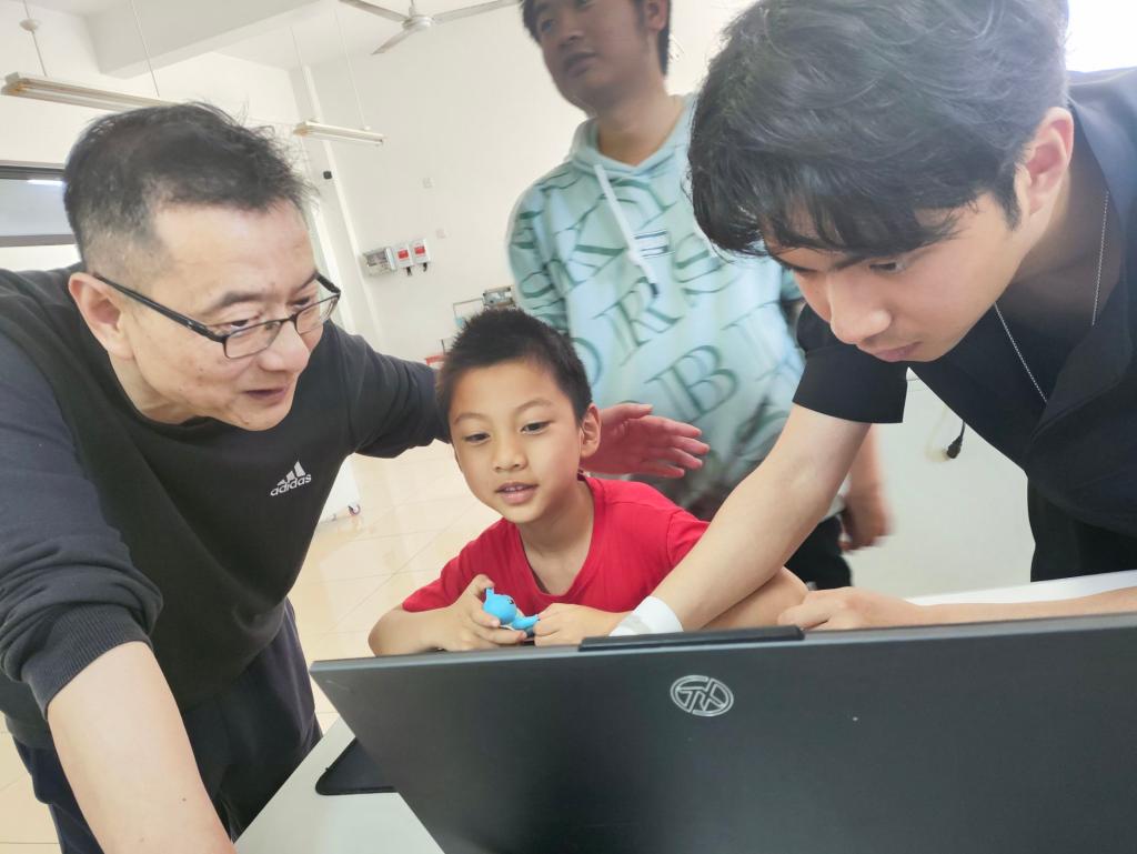 此次研学活动由学院电子创客社团承办,电工电子物理基础教学中心负责人吴飞青教授亲自授课,活动选取趣味性强的物理小实验,通过一对一志愿者协助下,小朋友们最终完成电路连接并使彩灯亮起。在吴飞青教授通俗易懂的讲解下,孩子们既了解到简单的物理知识,又体验到物理实验带来的乐趣,现场互动氛围良好。