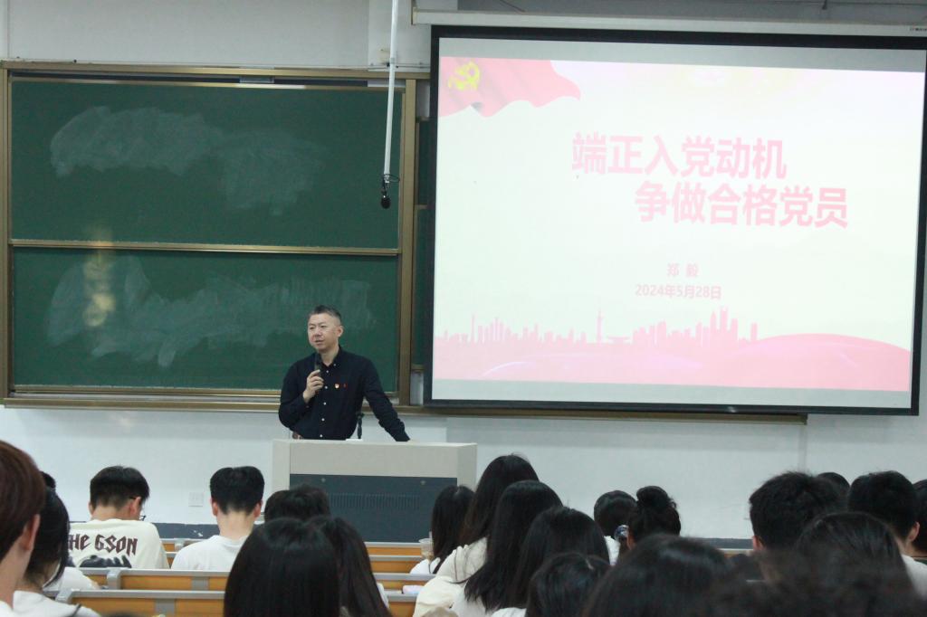 郑毅围绕“端正入党动机,争做合格党员”这一主题讲授党课,他由建党100周年纪念大会上“强国有我,请党放心”的朗诵视频展开,并列举在疫情期间坚守在各个战线的党员故事,向同学们发问“为什么要入党?”,引导同学们深入思考。郑老师从入党动机是什么,如何端正入党动机,如何按照党员标准严格要求自己三个方面,引导在座学员正视自己的入党动机,并不断审视入党动机,加强对党的认识,提高政治觉悟,从思想上、行动上按照党员标准严格要求自己。他强调,作为积极分子,要树立远大理想,坚定共产主义信念,以身作则,勇于奉献,时刻以一名合格党员的标准来严格要求自己。