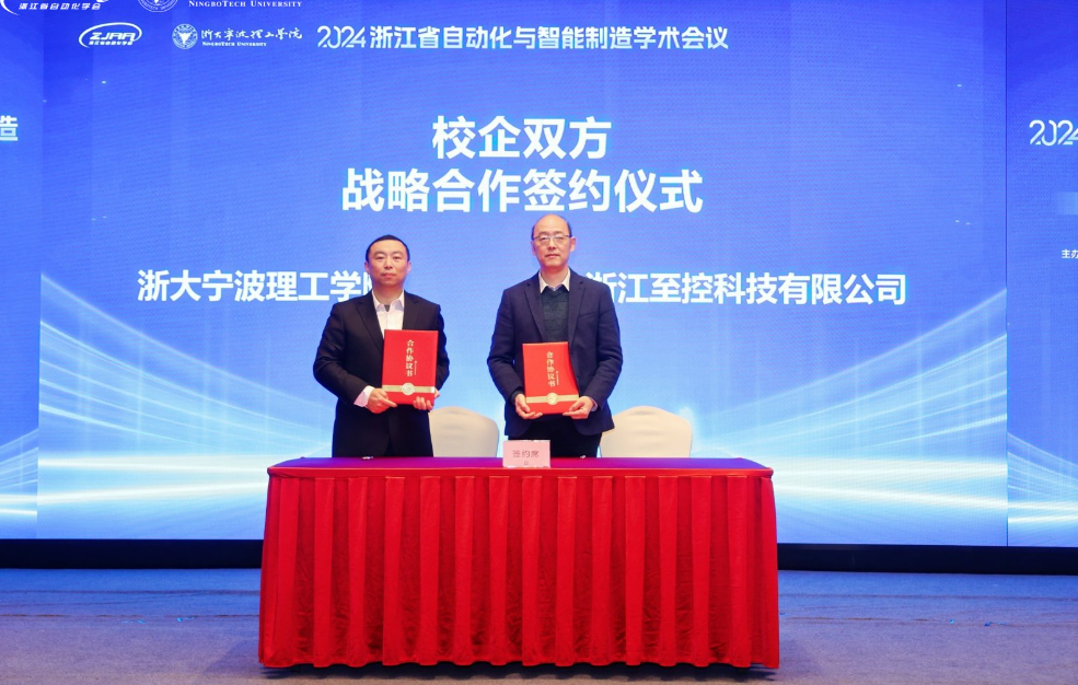 随后,浙江至控科技有限公司与浙大宁波理工学院进行了战略合作签约暨PLC设备捐赠仪式,标志着双方将在党建共建、科技创新、人才培养等方面开展更深层次的合作。