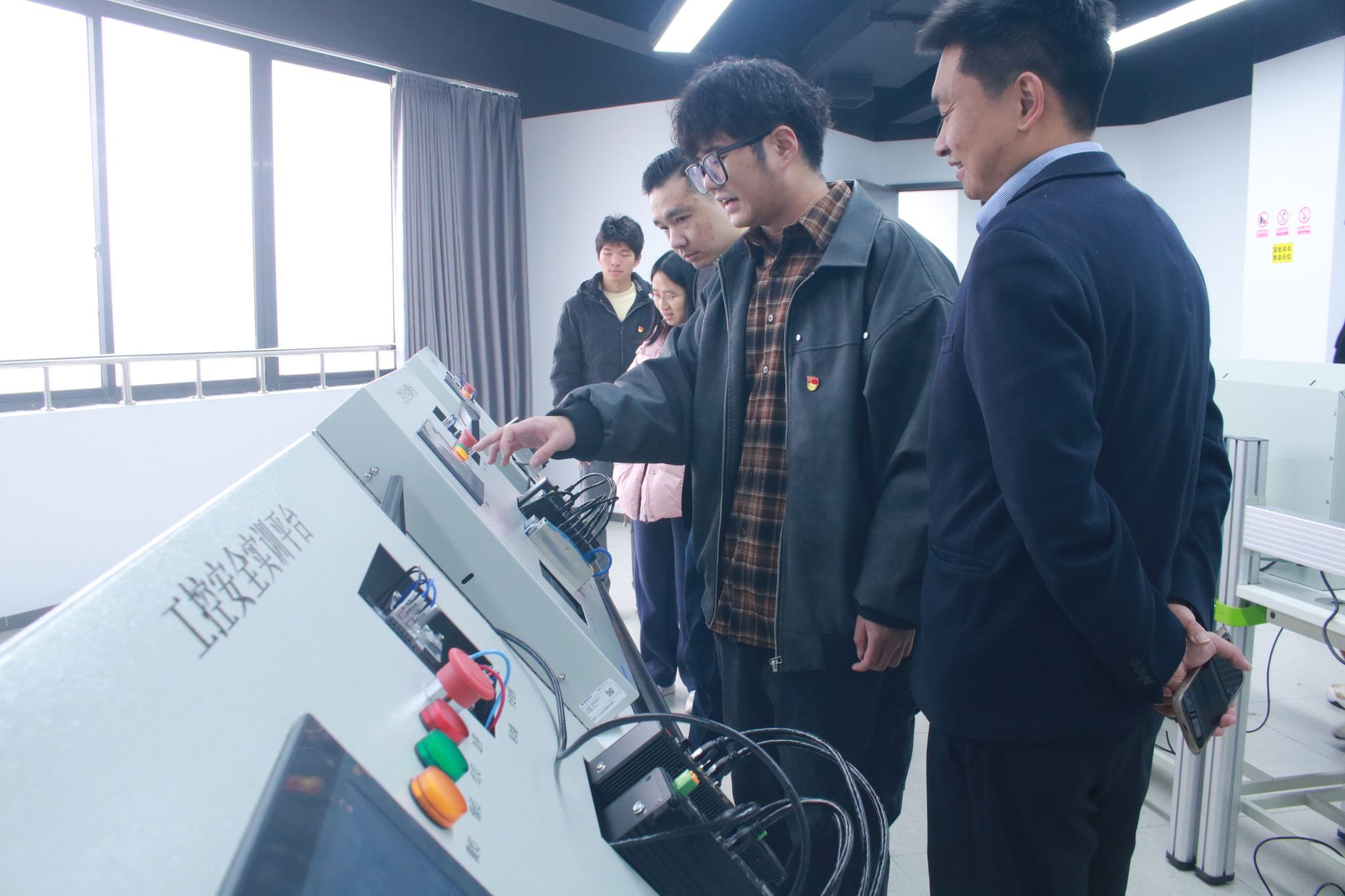 返校系列活动前,“芯”青年宣讲团成员为校友们介绍了学院7楼实验室建设情况。