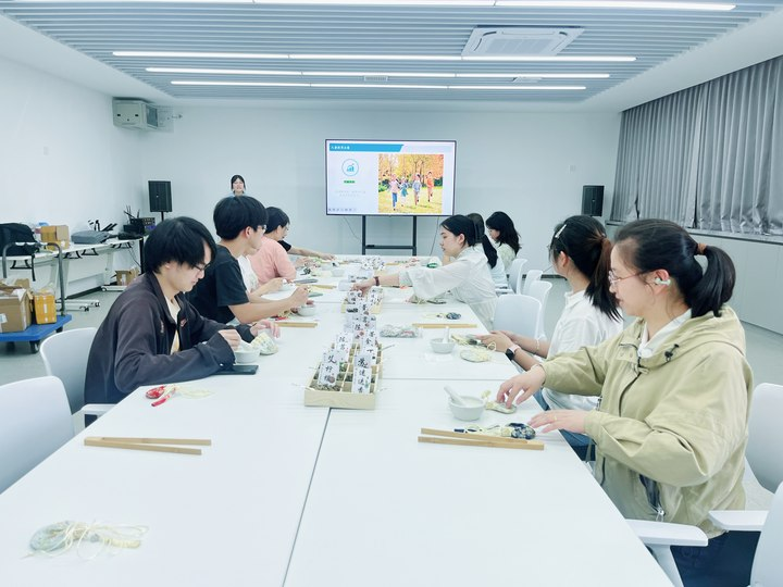 香囊的DIY过程现场洋溢着欢声笑语,不一会一个个精巧别致、香气怡人的手工香囊便陆续完成。师生们一边系紧香囊的束绳,一边将端午安康的美好祝愿与对幸福生活的期许放入其中。这些承载着心意的香囊,既是一份送给亲友的温馨礼物,也是送给自己的节日祝福。