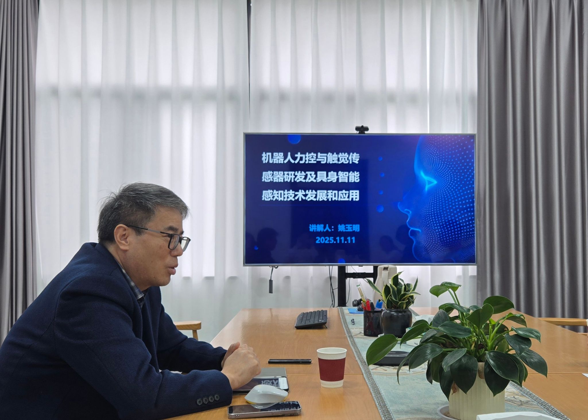 为推进科产教融合,提升学院人才培养能力,11月11日下午,信息科学与工程学院特邀原任柯力传感技术总监、浙江省卓越工程师姚玉明在通用楼203-2会议室举行信·咖名家讲坛第十五讲“机器人力控与触觉传感器研发及具身智能感知技术发展和应用”。讲座由学院副院长陶吉利主持,学院学术副院长周玮老师以及各学院部分感兴趣的师生参加。
