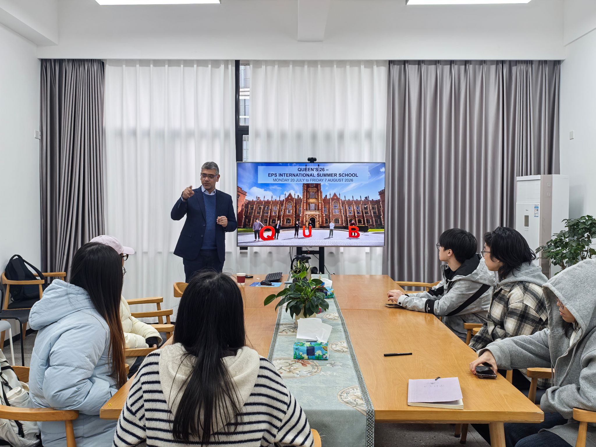 12月5日,英国女王大学贝尔法斯特电子、电气工程与计算机科学学院Wasif Naeem教授到访信息科学与工程学院,就学期学生交流项目进行宣介,宣介会由学院副院长沈非凡主持,学院各年级共十余位同学参会。